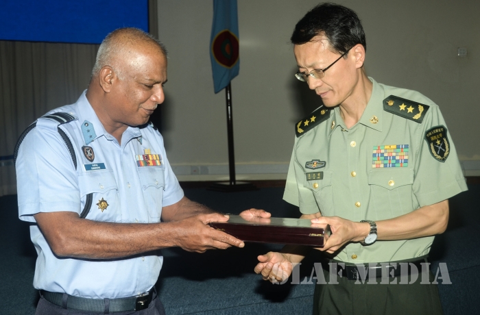 The delegation was headed by Lieutenant General Wu Jieming , Deputy Political Commissar of the University. On their arrival to AFHQ, they were received by Air Vice Marshal Vijitha Gunaratne, the Director Training of the Air Force.