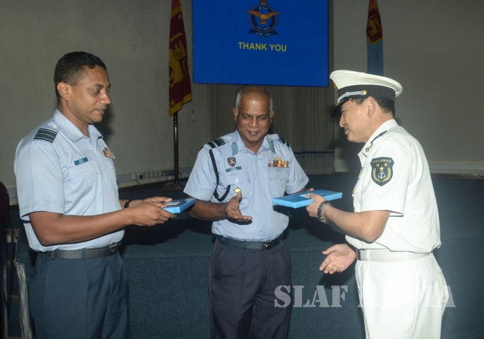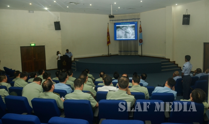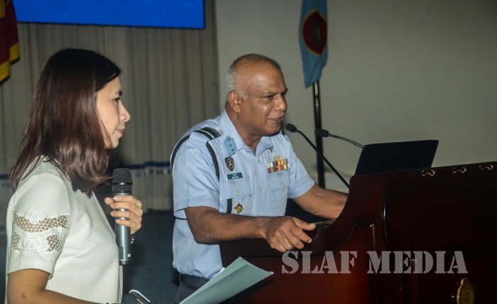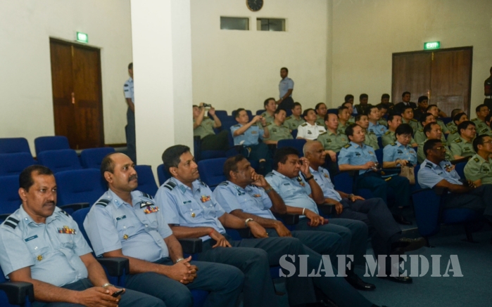 A presentation was conducted by Group Captain Lasitha Sumanaweera, the Senior Staff Officer Air Operations on ‘Post conflict role and challenges’ of the Sri Lanka Air Force. Subsequently, interactive Q & A session was held with the participation of Air Force Board of Management.
