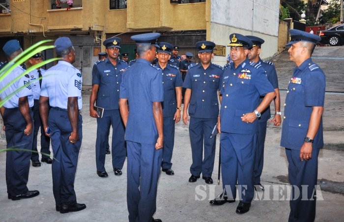 The Commander was welcomed by the Commanding Officer SLAF Station Colombo, Air Commodore Prasanna Payoe. A Guard of Honour was accorded the Commander at Headquarters, following which 1 Master Warrant Officer, 1 Warrant Officer, 14 SNCOs and 8 JNCOs received commendations from the Commander.