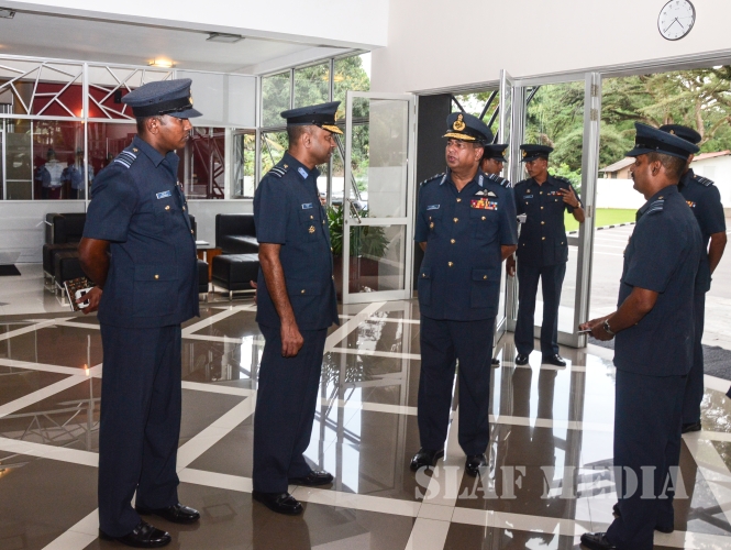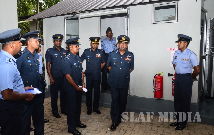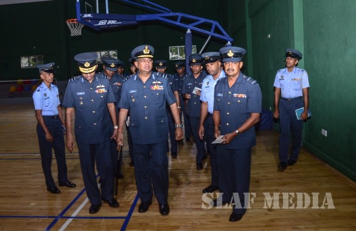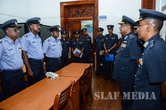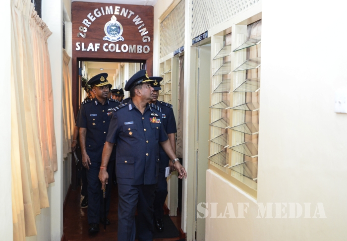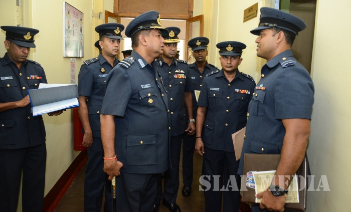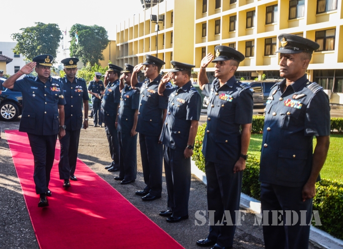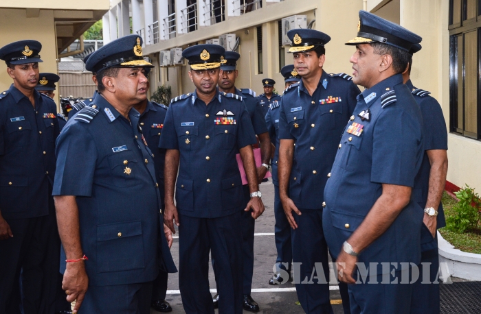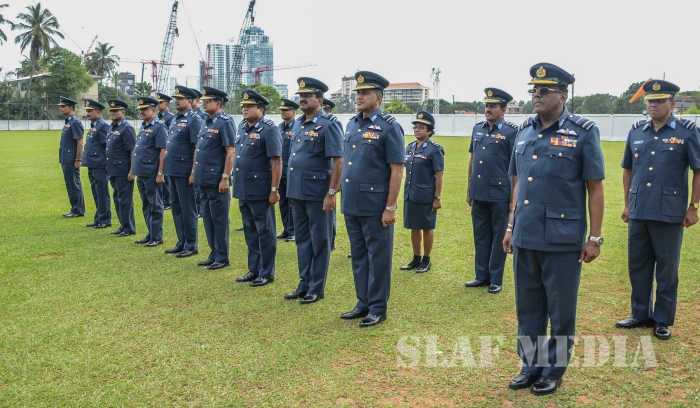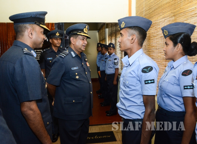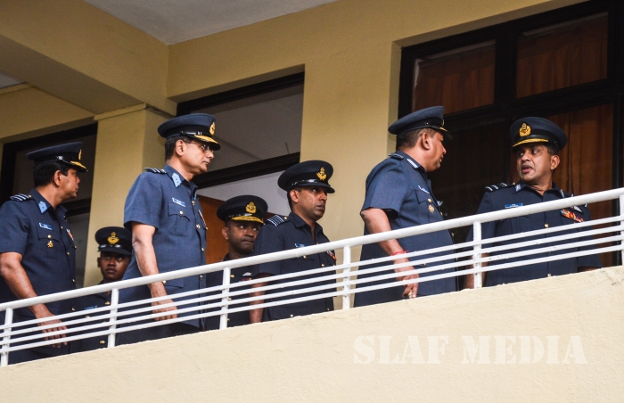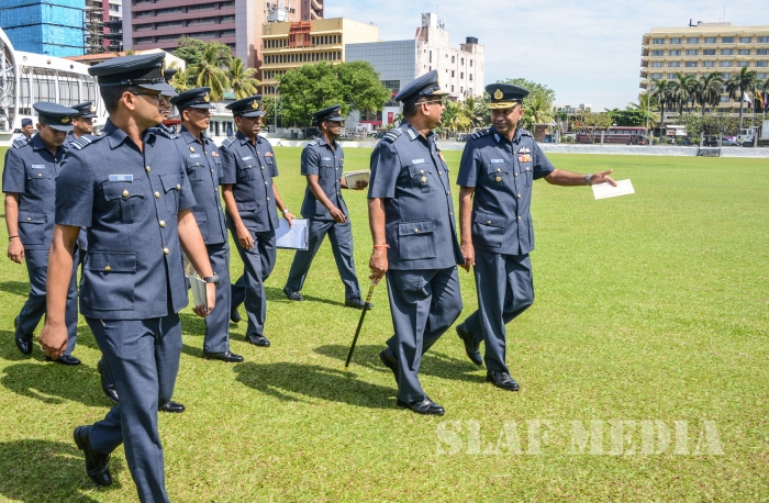 The Commander was welcomed by the Commanding Officer SLAF Station Colombo, Air Commodore Prasanna Payoe. A Street Line was accorded to the Commander at Station premises. Commander visited all the areas of the station and after concluding the inspection took a seat at the Airmen mess with a cross section of Officers, Airmen, Airwomen and Civilian staff for the customary all ranks lunch. This was followed by the Commander's address in which he admired the commendable work of personnel at AFHQ and Station Cbo in maintaining the high standards. He emphasized the importance of English and Information technology proficiency and his vision for the future of the Sri Lanka Air Force. During the speech the Commander explain why such annual inspection system has be implemented, its importance for the gathering.