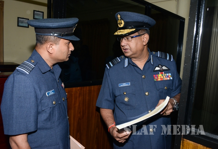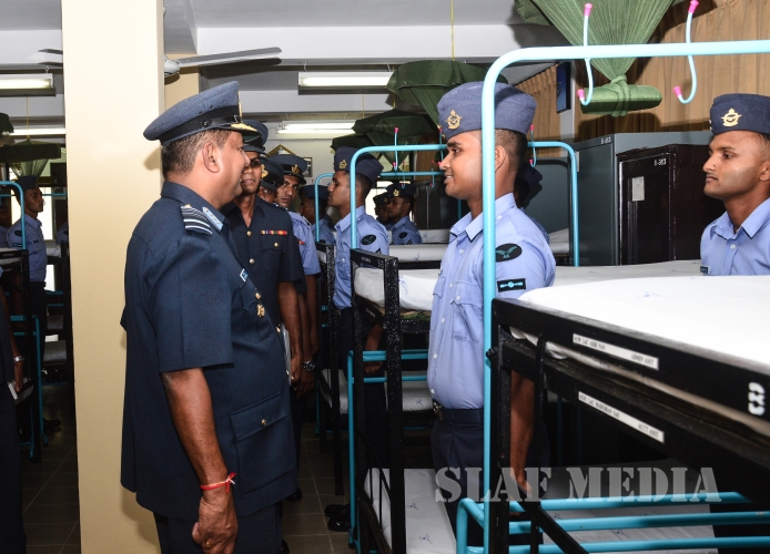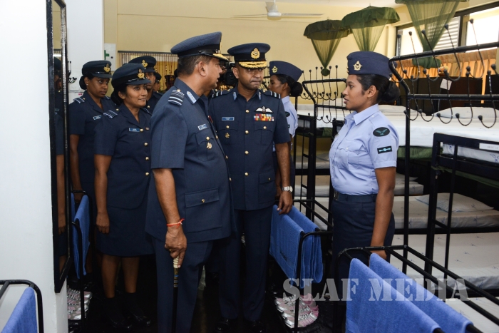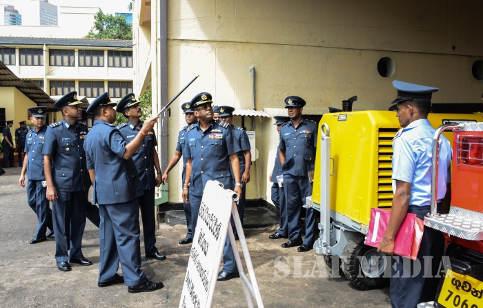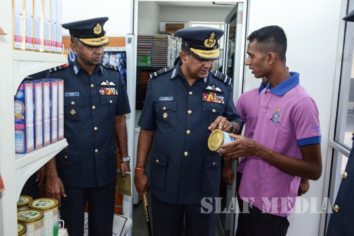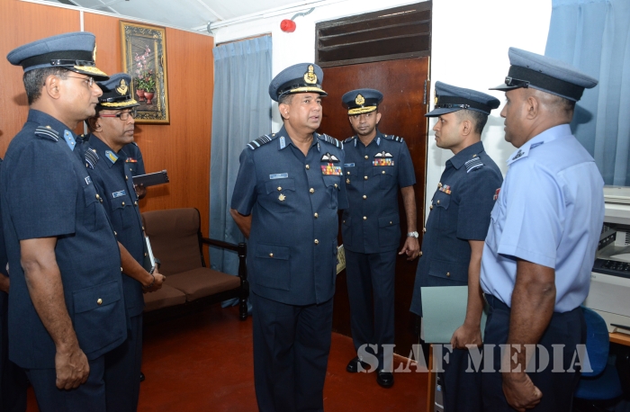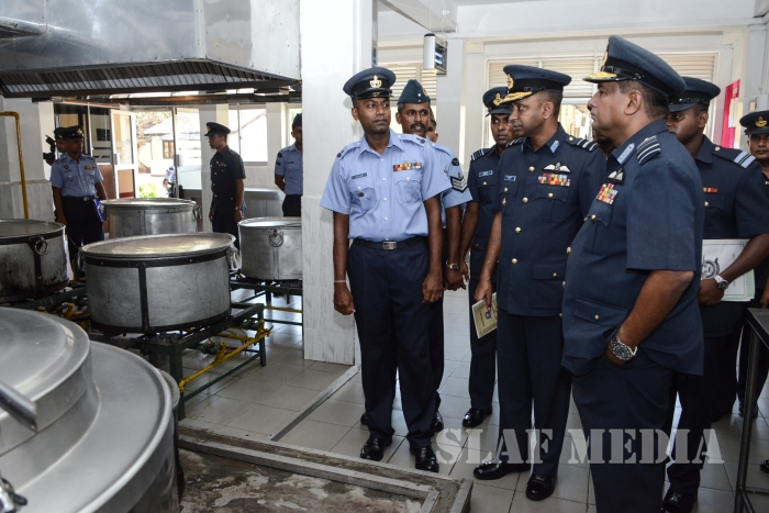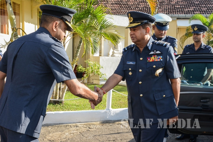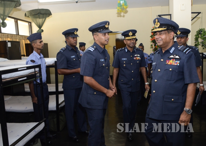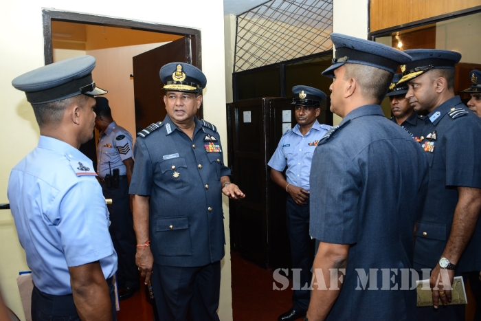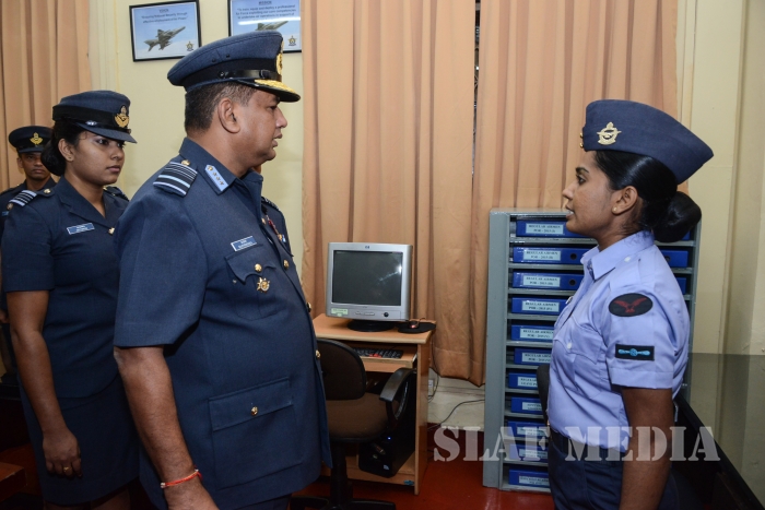 The Commander was welcomed by the Commanding Officer SLAF Station Colombo, Air Commodore Prasanna Payoe. A Street Line was accorded to the Commander at Station premises. Commander visited all the areas of the station and after concluding the inspection took a seat at the Airmen mess with a cross section of Officers, Airmen, Airwomen and Civilian staff for the customary all ranks lunch. This was followed by the Commander's address in which he admired the commendable work of personnel at AFHQ and Station Cbo in maintaining the high standards. He emphasized the importance of English and Information technology proficiency and his vision for the future of the Sri Lanka Air Force. During the speech the Commander explain why such annual inspection system has be implemented, its importance for the gathering.