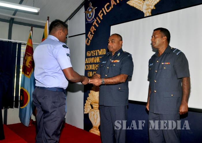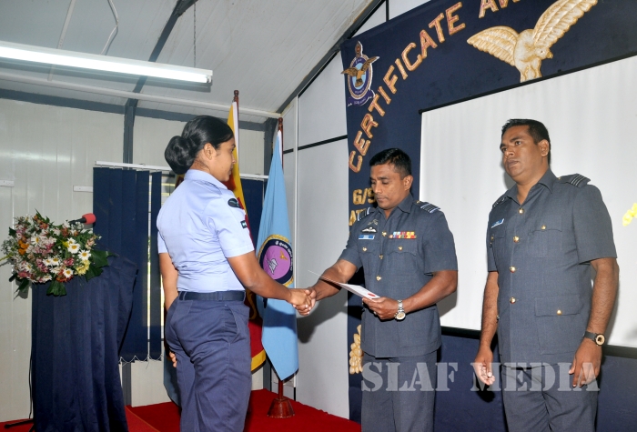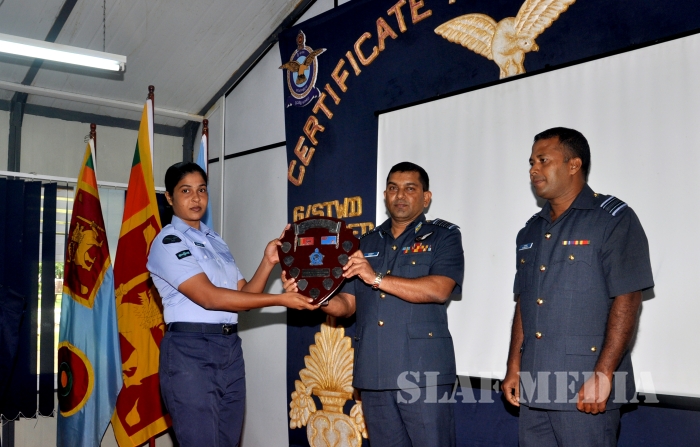 The trophy for the best student of NO 02/2015 Catering Assistant Advanced Course was awarded to 36508 Leading Air Craftsman Mallawa PALDC while the trophy for the best student of NO 01/2015 Ground Steward Advanced Course was awarded to AW/2878 Leading Air craftswoman Sewwandi VPE.