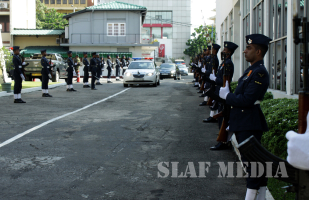Pakistani Prime Minister who was accorded a red carpet welcome on arrival at SLAF’s Rifle Green, was received by the Commander of the Air Force Air Marshal Gagan Bulathsinghala.