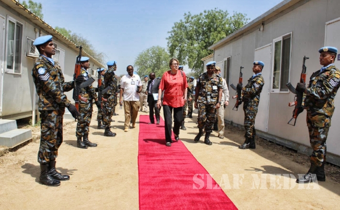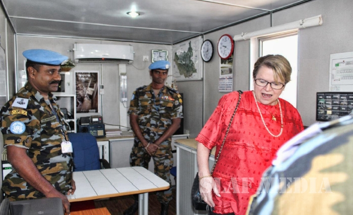 Ms Ellen MargretheLøj, The Special Representative of the Secretary-General and Head of the United Nations Mission in the Republic of South Sudan (UNMISS) paid an official visit to the UNMISS Bor compound of Jonglei state of South Sudan on 09 February 2016. She visited the Sector Head Quarters, and all Contingents of TCCs (Troop Contributing Countries) in Bor UN compound.
