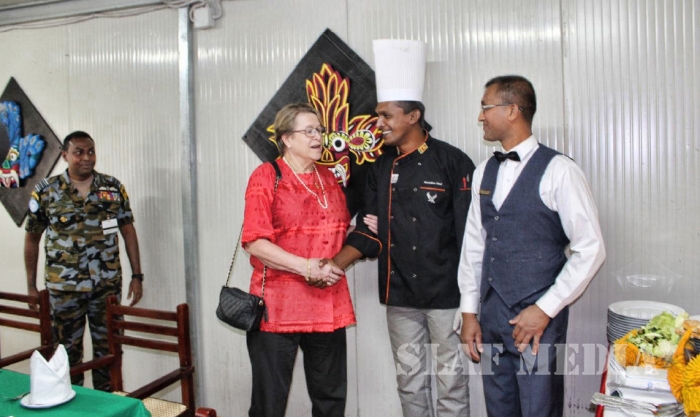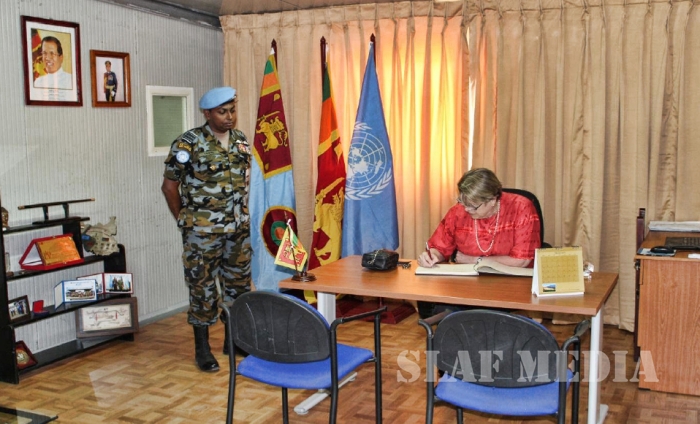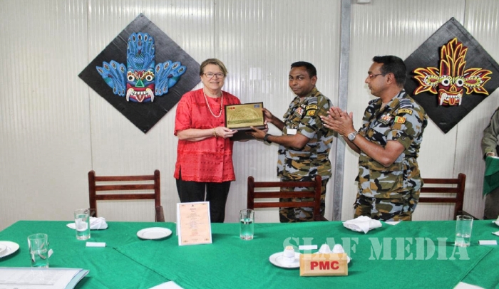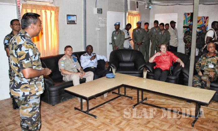 Upon her arrival at the Sri Lanka Aviation compound, SRSG was honored by a Guard of Honor. The Contingent Commander conducted a brief presentation at the Officers’ Mess, giving an introduction about Sri Lanka, SLAF, Contingent, its operational aspects, achievements and finally the tasks to be accomplished in near future.
