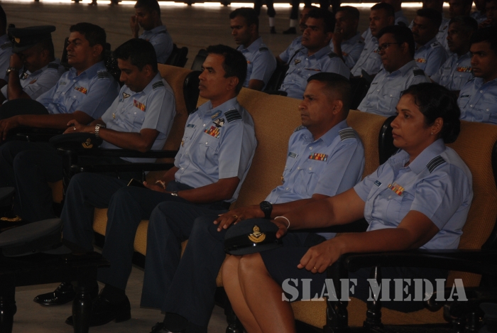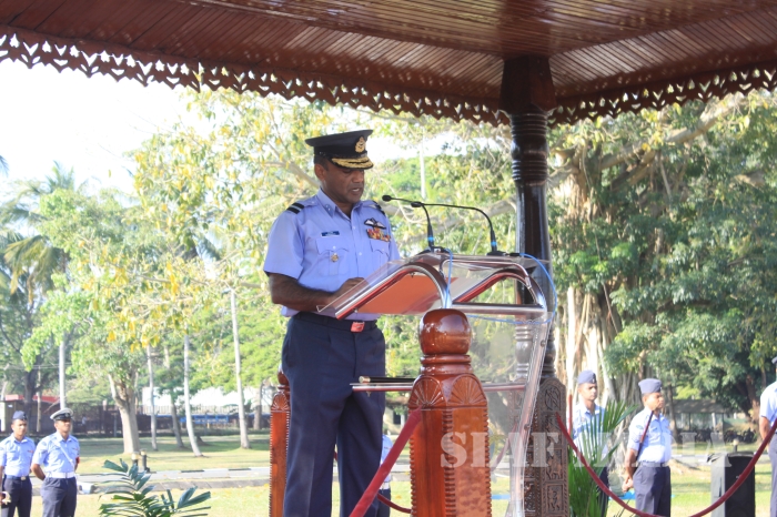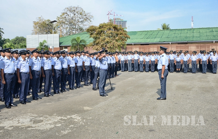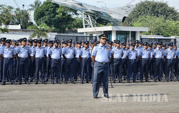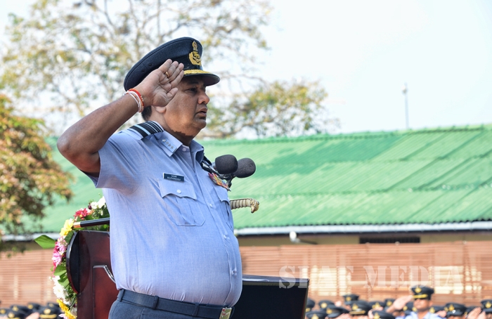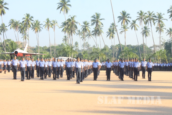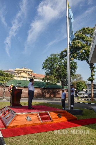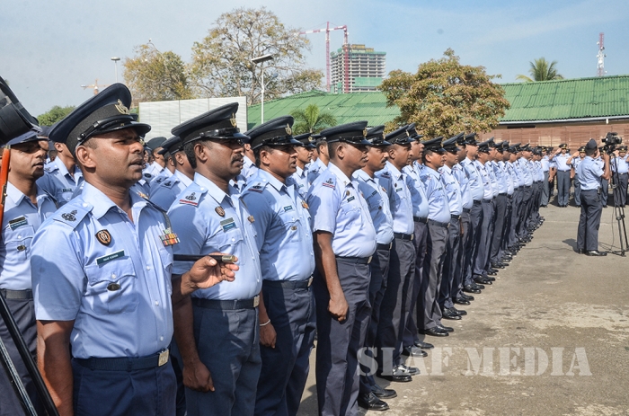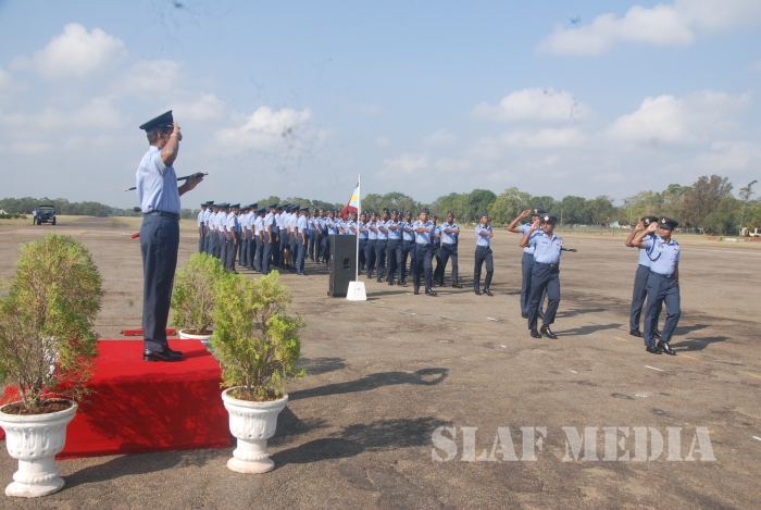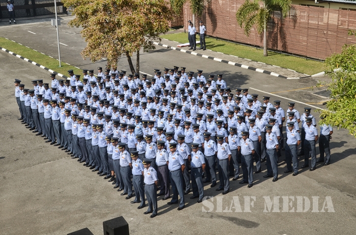 The Commander of the Sri Lanka Air Force, Air Marshal Gagan Bulathsinghala, addressed the parade held at AFHQ premises and extended his best wishes to all members of the Air Force on it's 65th Anniversary. The Commander thanked all members past and present and their families for their contribution towards enabling the Air Force to reach the heights it has achieved.