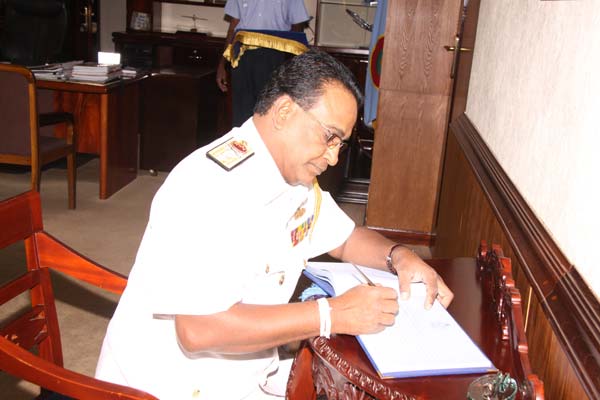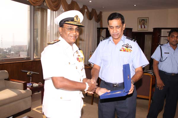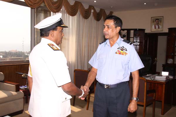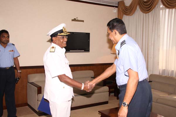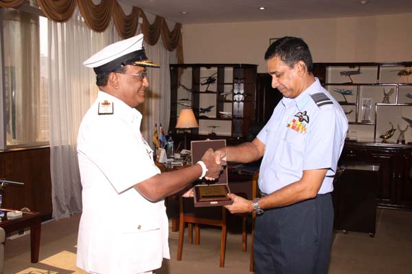 The new Director General of Civil Security Department Rear Admiral Ananda Pieris (RSP, VSV, USP,ndc, psc, Diss) paid a visit to Air Force Head Quarters this evening (16 March 2010) to pay a traditional call of courtesy to Acting Chief of Defence Staff and the Commander of the Sri Lanka Air Force Air Chief Marshal Roshan Goonetileke.