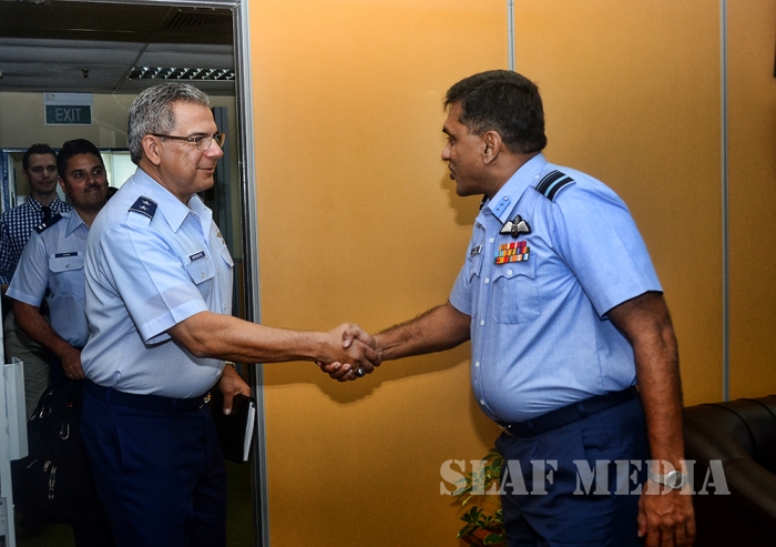 Maj. Gen. Abel Barrientes, Mobilization Assistant to the Vice Commander, Pacific Air Forces, Joint Base Pearl Harbor-Hickam, Hawaii called on the Chief of Staff of the Air Force Air Vice Marshal CR Gurusinghe at the Sri Lanka Air Force Headquarters today (17 March 2016).