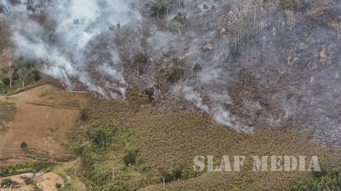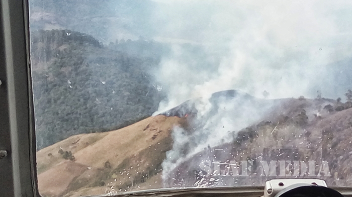 A huge area of land has been destroyed in fires which are spreading recently in the mountainous regions of Hatton and Kandy. A fire broke out in the area of Sundaragama Waththa in Dayagama was reported to AFHQ yesterday evening. With the direction of the Commander of the Air Force, a specialist team of fire fighters inclusive of two officers and five airmen were deployed immediately by the Commanding Officer of SLAF Stn Diyatalawa to assess the condition of the fire. In the meantime 30 troops of SL Army and 15 Policemen from SL Police Dayagama have deployed to assess and to take fire control measures. However, due to non-availability of communication coverage and difficulty of reaching the location at night, the SLAF team deployed on ground couldn’t suppress the situation.