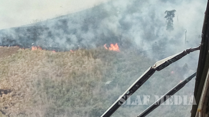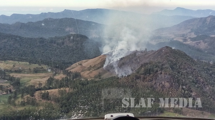 A MI 17 helicopter from No. 06 Squadron was deployed since this morning (21st March 2016) to assist in retarding the spread of a forest fire which erupted in the wetland areas of Agarapathana, Bopathalawa forest reserve in Hatton.