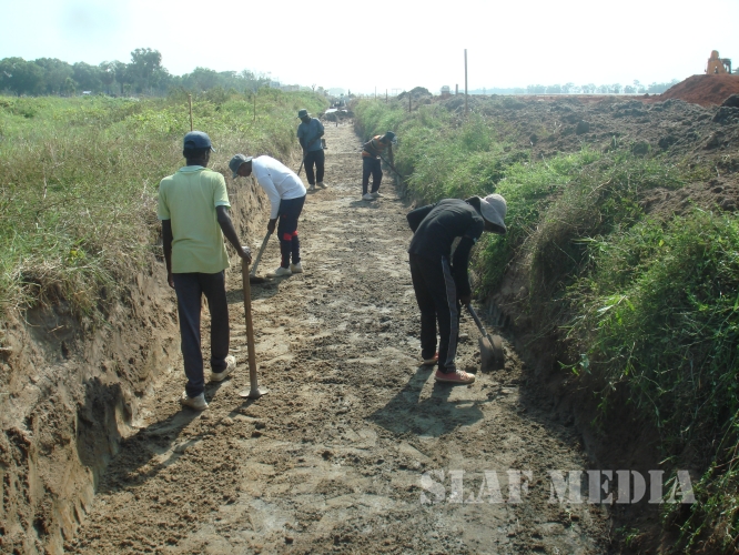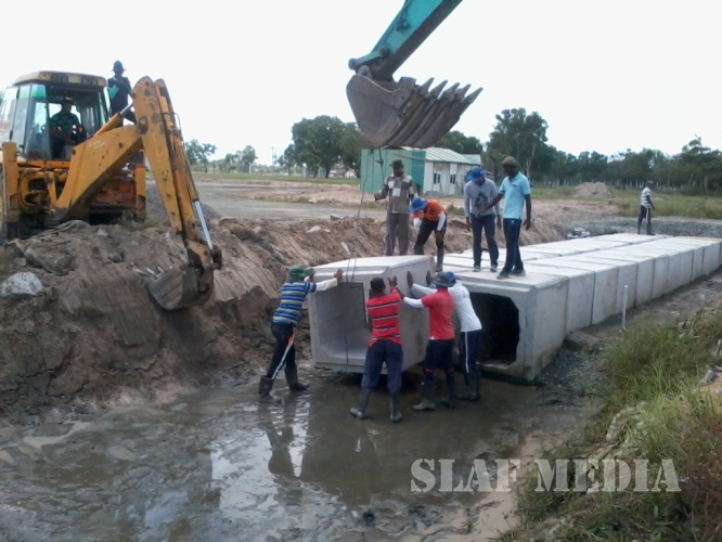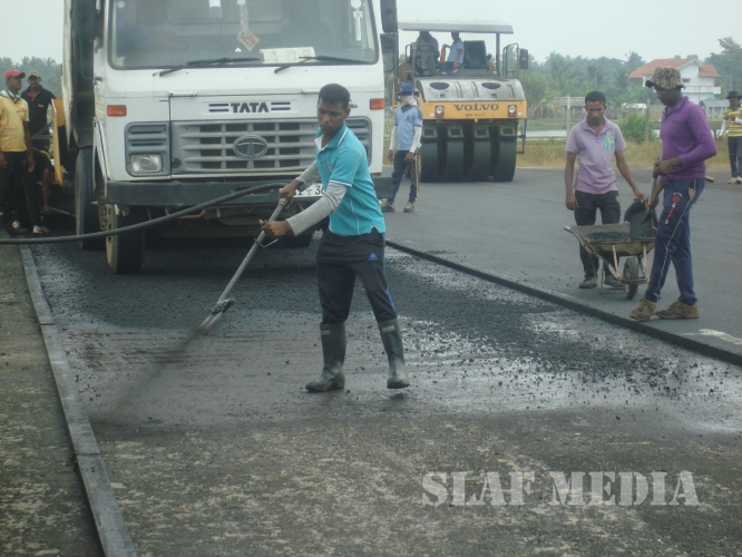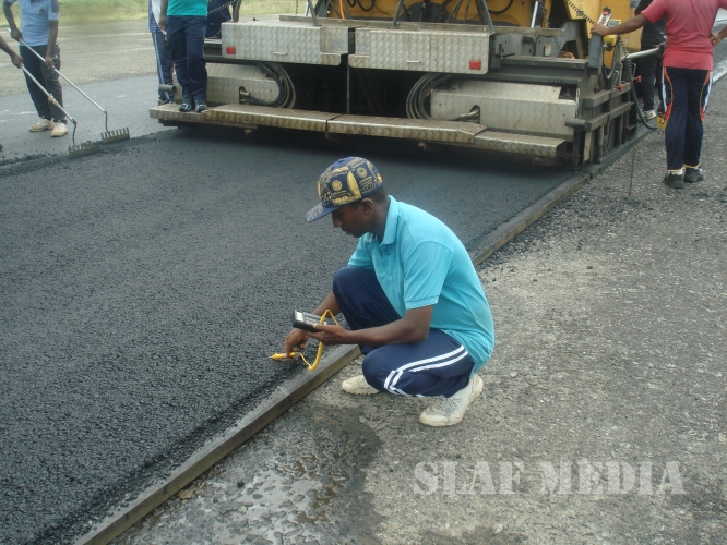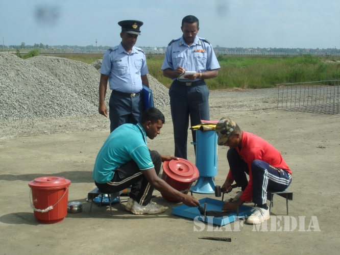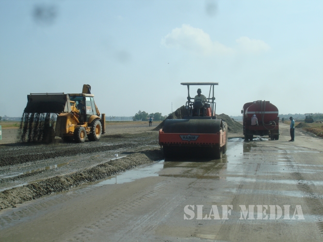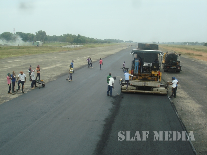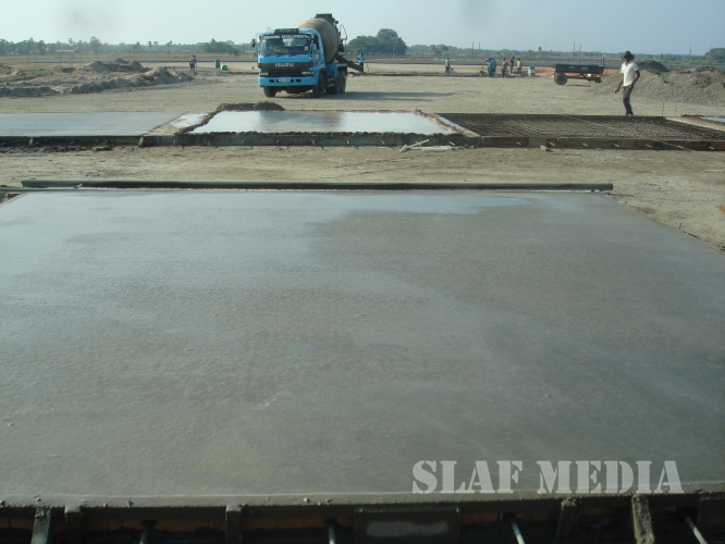 Air Field construction Wing SLAF Base Rma has now concentrated on construction of apron (90x60), Concrete drain (1560m) after completion of 1st layer of asphalt concrete up to 1000 mtrs of the runway.