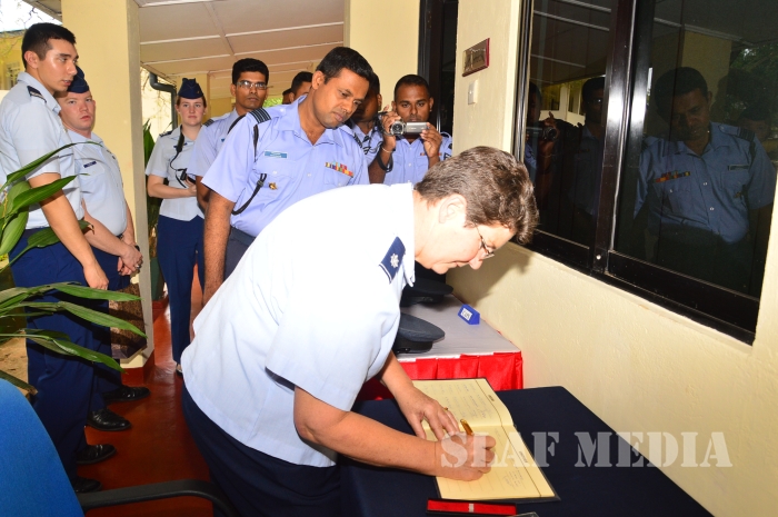 They met the Commandant of SLAF Academy China Bay Air Cdre PDKT Jayasinghe and Visit to No1 FTW, JC&SC, GTW, NCO Mgt School, Officer Cadet Mess, Naval Military Academy. There was an exchange of mementos with the visiting delegation from the United States Air Force Academy to mark this event.