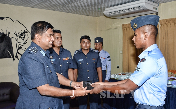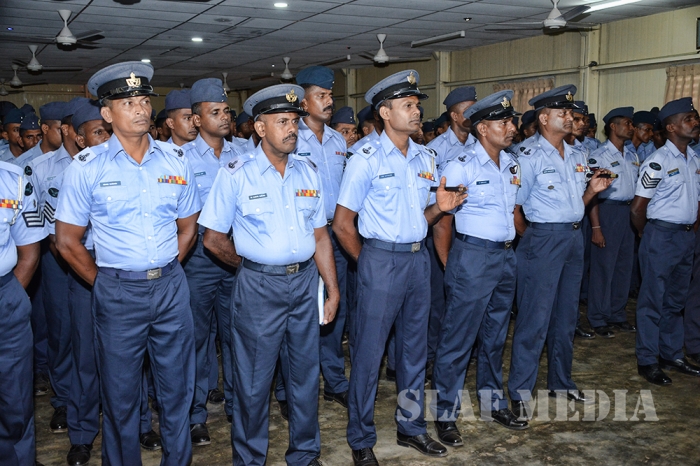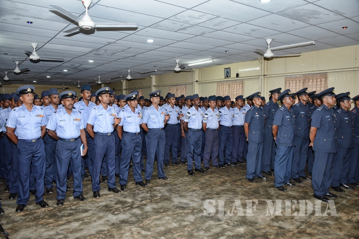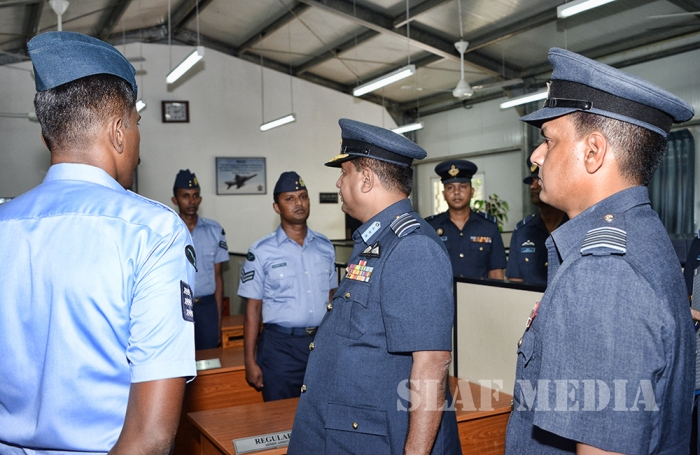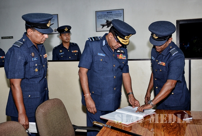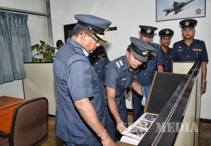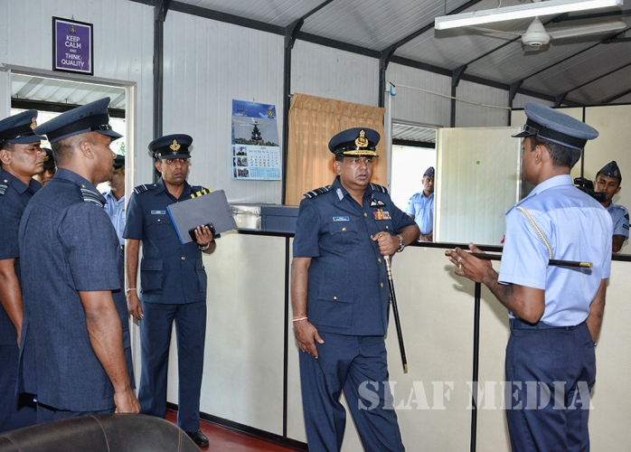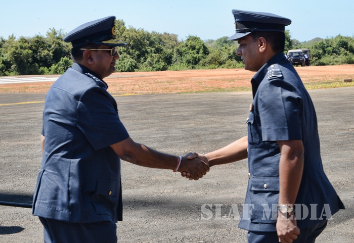 The Commander was welcomed by the Commanding Officer Wing Commander TMAB Mayurawasala and was accorded a Street Lining commanded by Flight Lieutenant NK Thilakaratne.