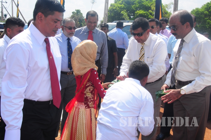 A fifty one (51) houses completed under the 'Sanhidiyawe Sathwirugama' housing project for families of service personnel including all nationalities were handed over today (03 April 2016) at Kokeliya, Vavuniya by Hon State Minister of Defence Ruwan Wijewardana.