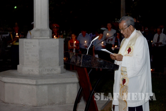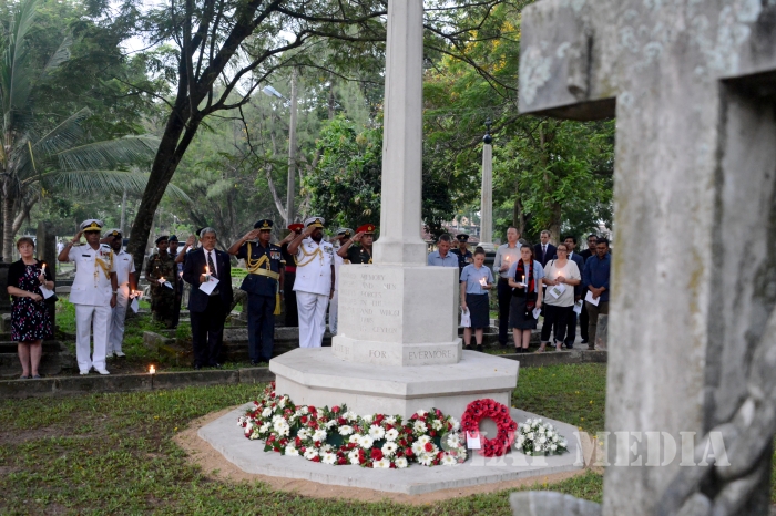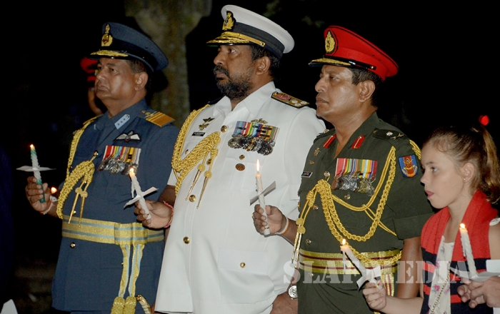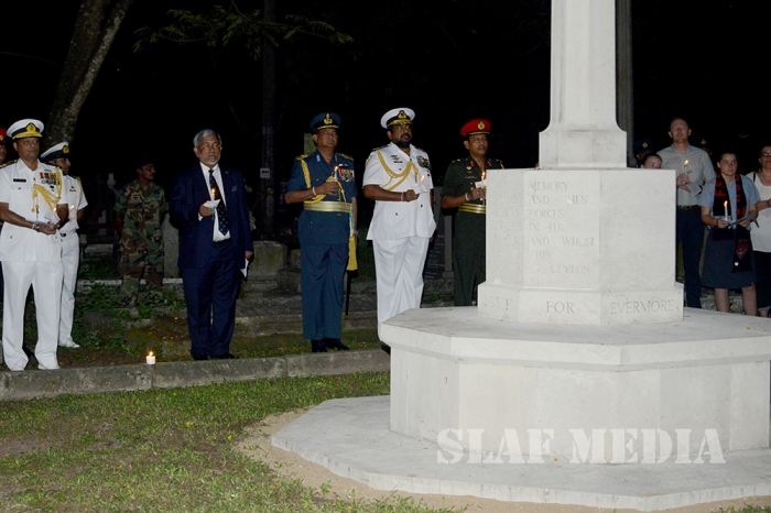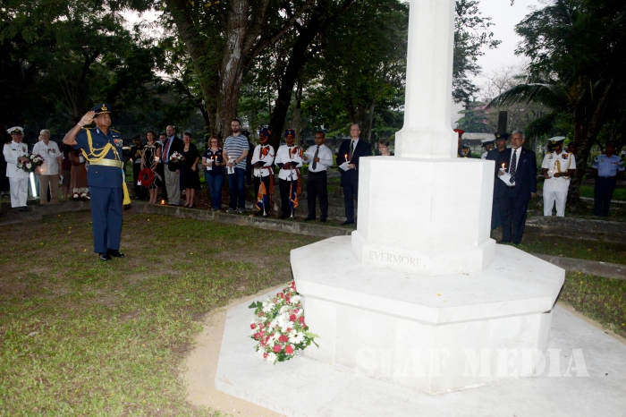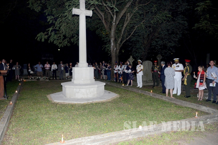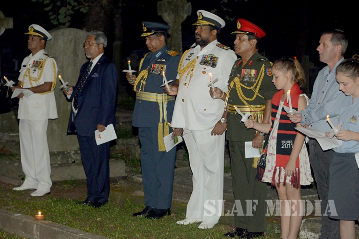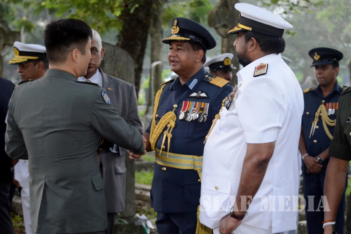Commander of the Air Force Air Marshal Gagan Bulathsinghala took part in the Dawn Service of the “ANZAC Day” commemoration held at the Great War Cross of Sacrifice in Borella Cemetery yesterday morning (25 Apr 16).
