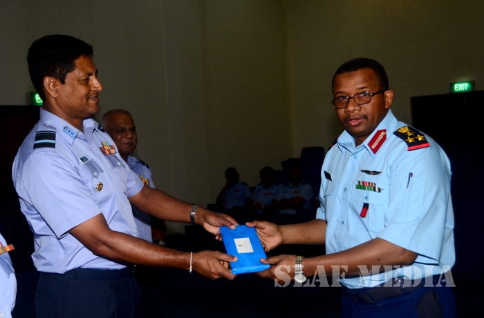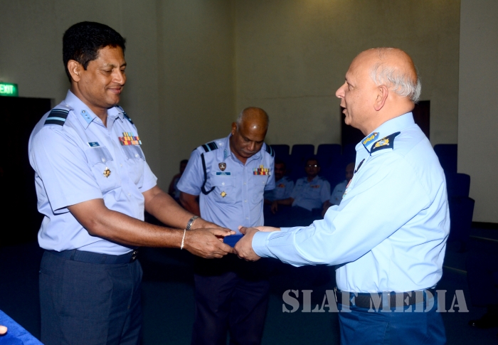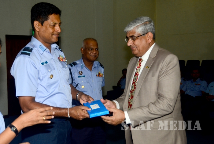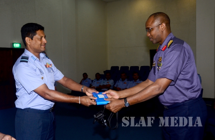 On arrival to AFHQ, they were welcomed by Wing Commander Rajiv Kodippily Staff Officer Training II to the Director Training of the Sri Lanka Air Force Air Vice Marshal Vijitha Gunarathne. Thereafter, the delegation met the Chief of Staff, Air Vice Marshal CR Gurusinghe. Symbolic mementos were exchanged between the delegation and the Chief of Staff of the Air Force to mark this event.