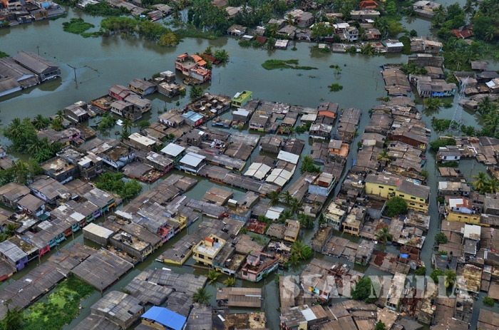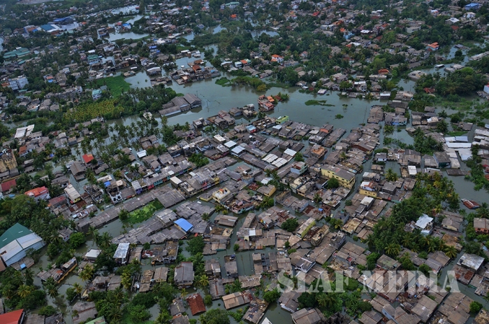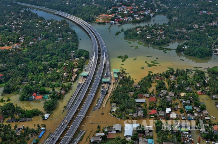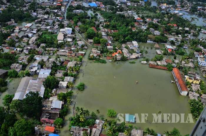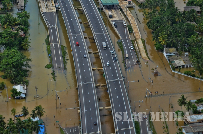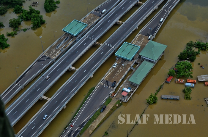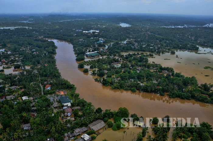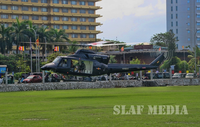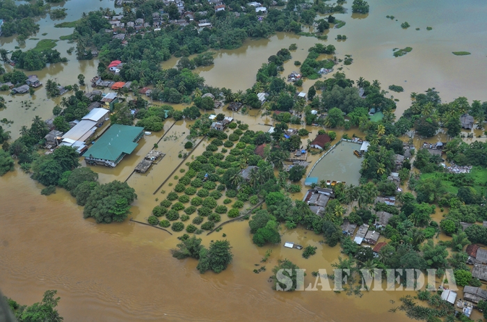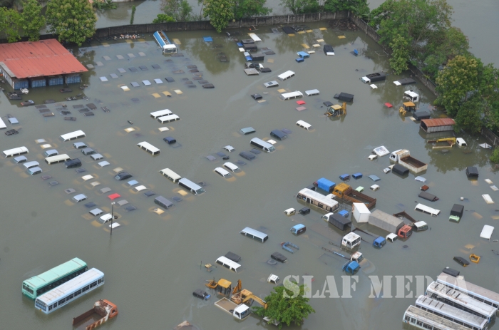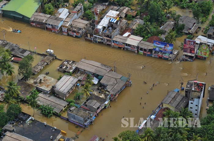 Sri Lanka Air Force continued rescue operations and providing of relief aid to victims of flash floods in Kelaniya, Biyagama areas by airlifting consignments of dry rations using Bell 212 and Bell 412 helicopters.