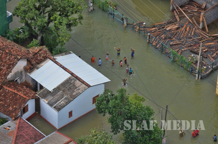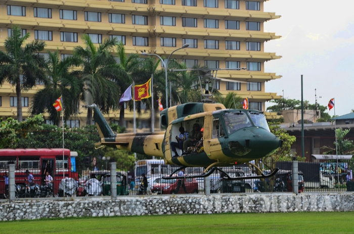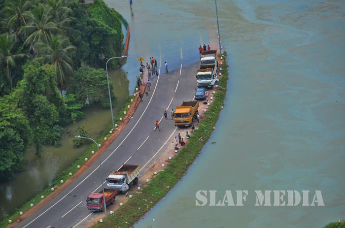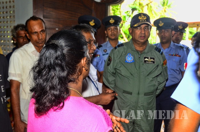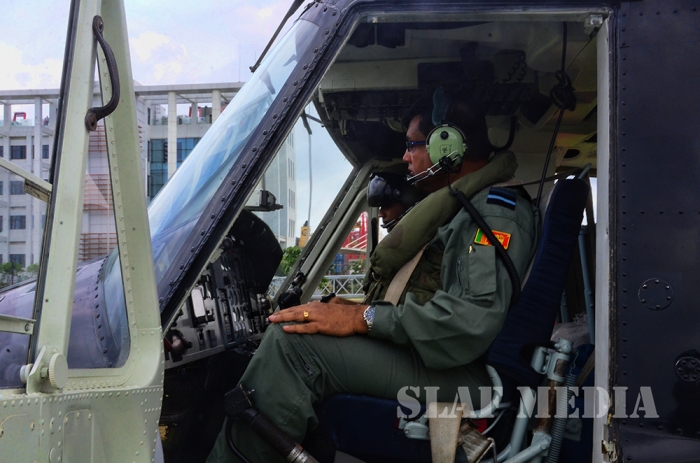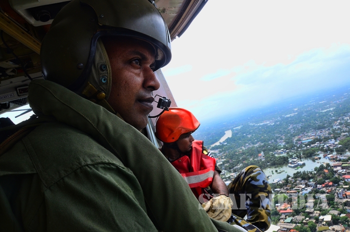 Commander of the Air Force Air Marshal Gagan Bulathsinghala flew a Bell 412 with the SLAF rescue crew to the affected areas on a relief mission. Also Commander visited Kettharama Flood Relief Unit to observe the on-going relief activities.