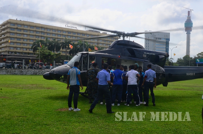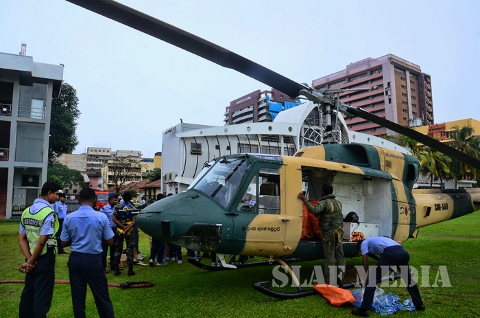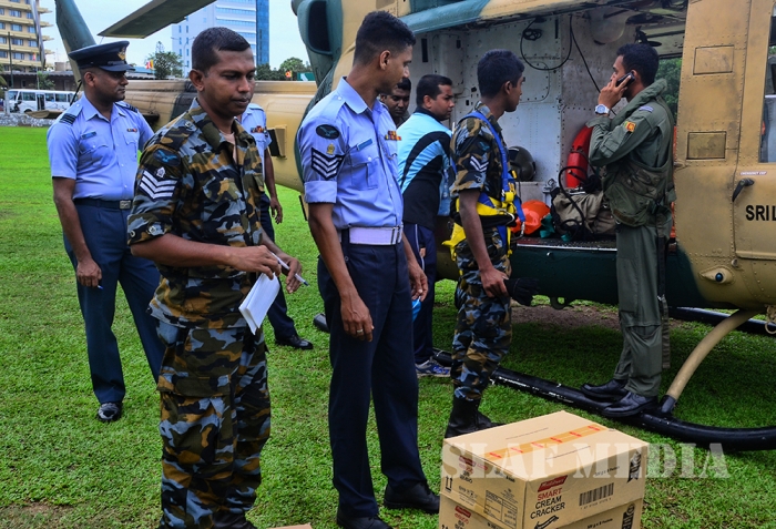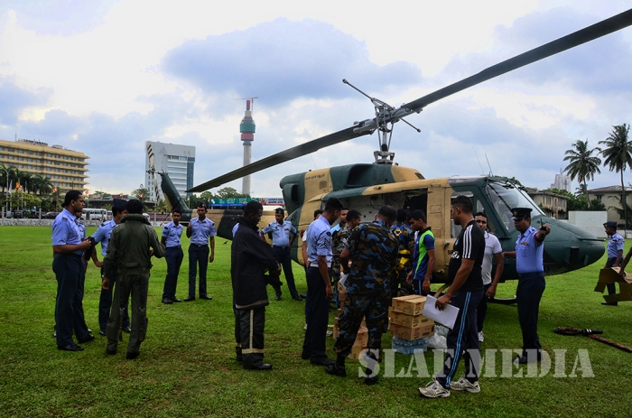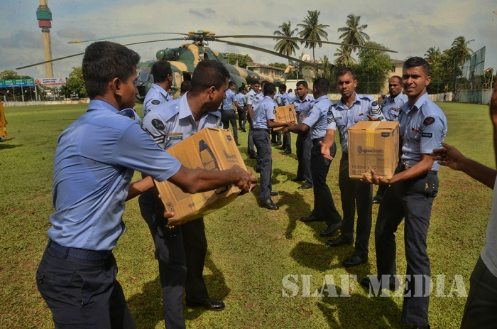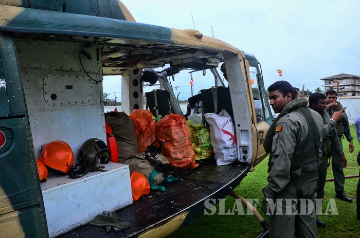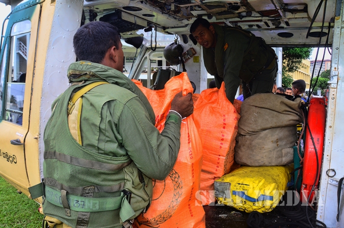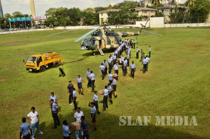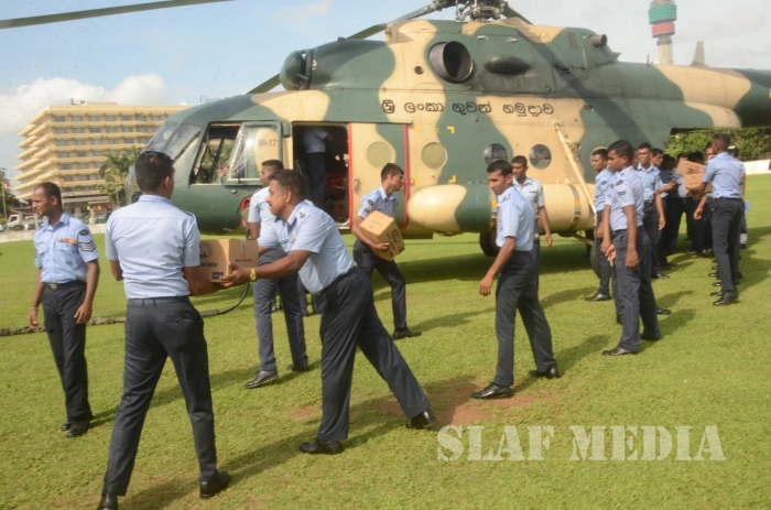 SLAF arranged Bell 212 (7 missions), Bell 412 (2 missions) and Mi 17 (1 mission) Helicopters to dispatch all goods immediately to the flood relief centres and also directly to those in needy.