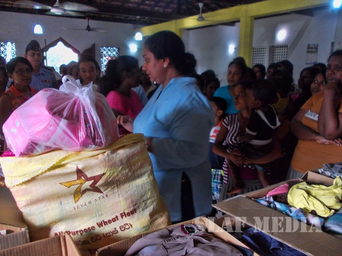 Sri Lanka Air Force Seva Vanitha Unit, conducted a distribution of flood relief items at Keththarama Temple among affected people of relief camp.