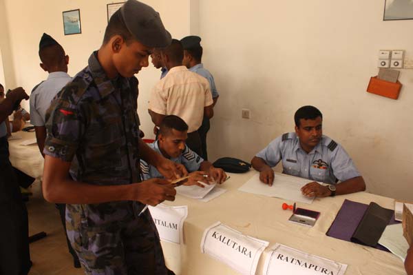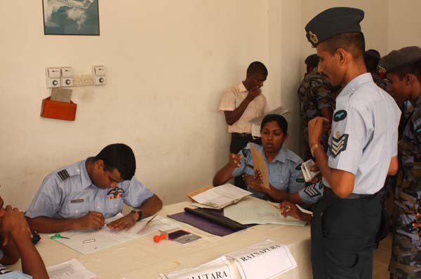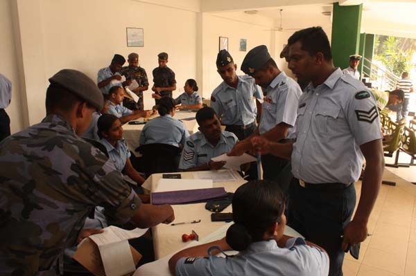 Postal voting for the General Elections to be held on the 08th of April 2010 began this morning (25 March 2010). Accordingly all SLAF establishments around the country have been setup to have their own polling booths in which all its personnel, would have the opportunity of exercising their rights today as well as tomorrow (25th and 26th of March 2010).