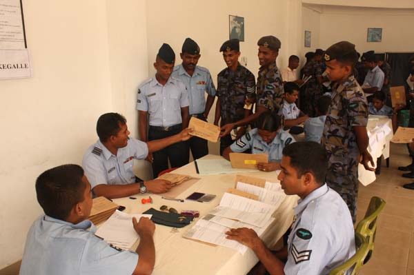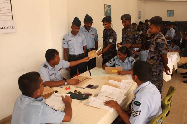 A large number of SLAF personnel serving in Colombo eagerly gathered at the Air Force Head Quarters polling booth to cast their postal votes.