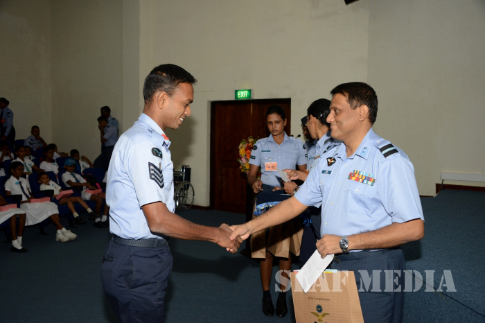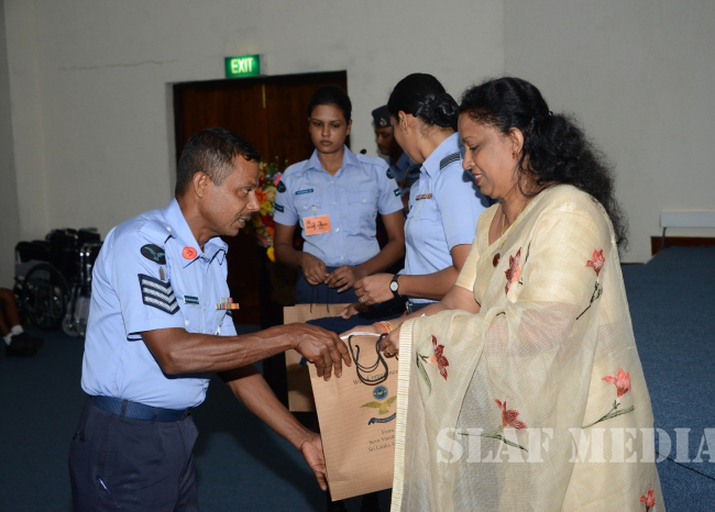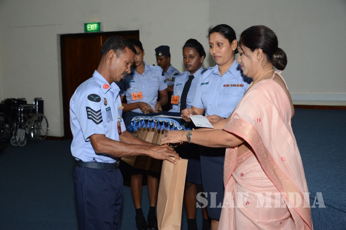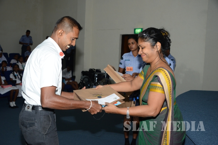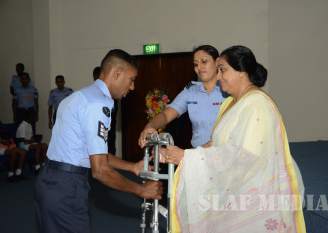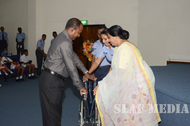 Commander of the Air Force Air Marshal Gagan Bulathsinghala graced the event and total number of 63 parents of special children received the monetary grants and 43 students of flood affected SLAF families received stationary items. Also Qty 03 wheel chairs and Qty 01 walker were donated to SLAF personnel on requests.