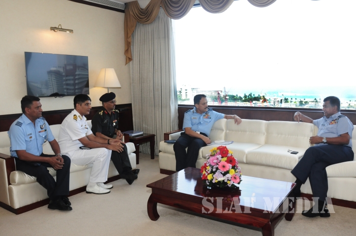 The Visiting Chief of Integrated Staff Committee to the Chairman Chiefs of Staff Committee, Air Marshal Ajit S Bhonsle called on the Commander of the Sri Lanka Air Force Air Marshal Gagan Bulathsinghala at the SLAF Headquarters today (14 July 2016).