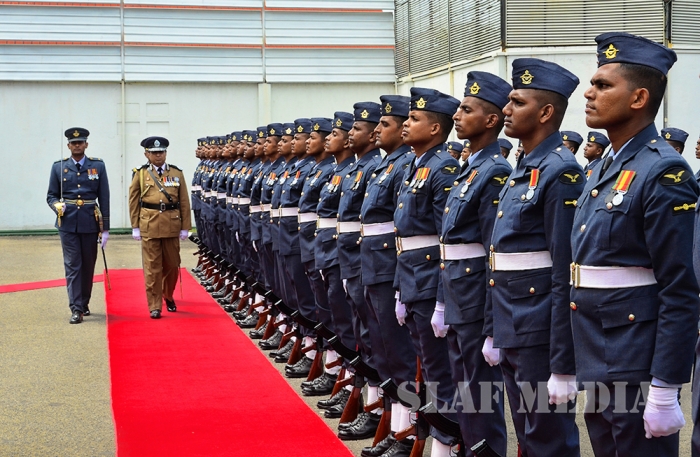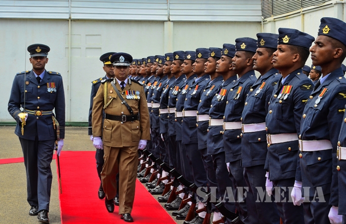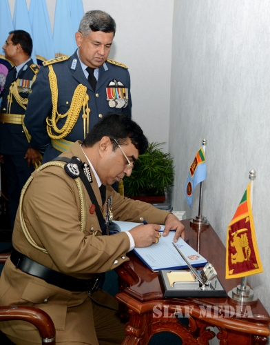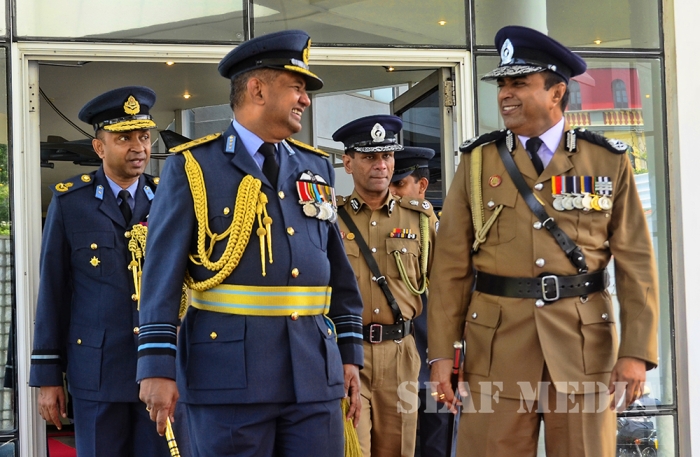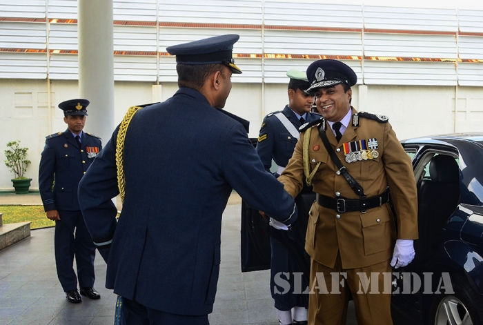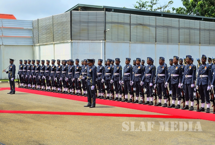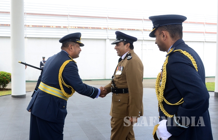 A Guard of Honour was accorded to the newly appointed Inspector General of Police Mr Pujith Jayasundara at his official visit to Sri Lanka Air Force (SLAF) Headquarters this morning (20 July 2016).
