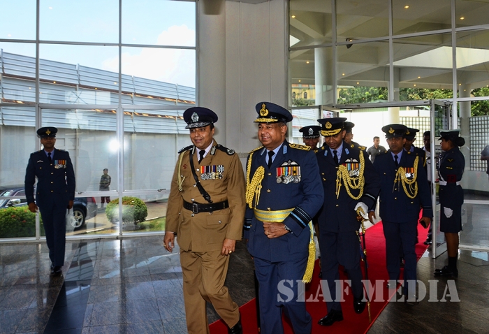 Thereafter, the Commander of the Air Force Air Marshal Gagan Bulathsinghala welcomed the 34th Inspector General of Police Mr Pujith Jayasundara to the Air Force Headquarters.