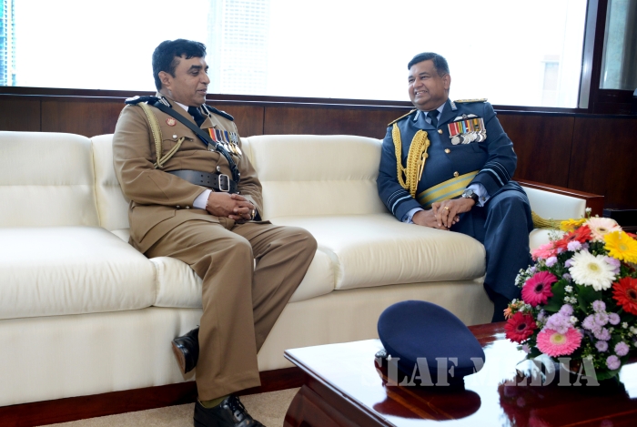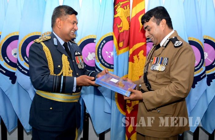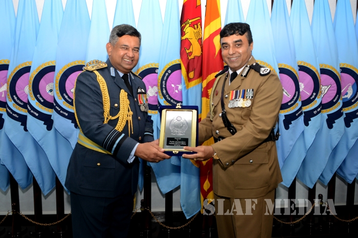After a discussion on matters of mutual interest, Commander of the Air Force and the visiting Inspector General of Police exchanged mementos to mark the occasion. The visiting IGP also met with the Chief of Staff and the Board of Management of the SLAF.