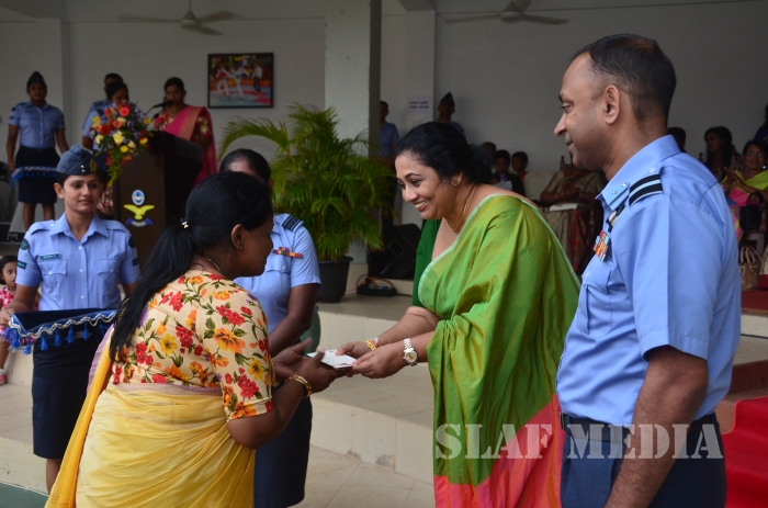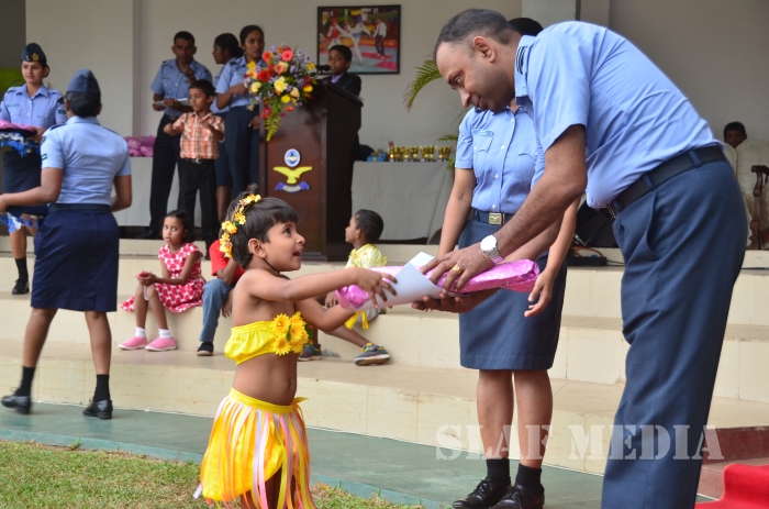The Chairperson of the SLAF Seva Vanitha Unit, Mrs. Samanthi Bulathsinghala graced the occasion as the Chief Guest and distributed the prizes and gifts among the children. Commanding Officer of SLAF Station Colombo Air Commodore Prasanna Payoe, Officers, Other Ranks and parents also present to witness the event.