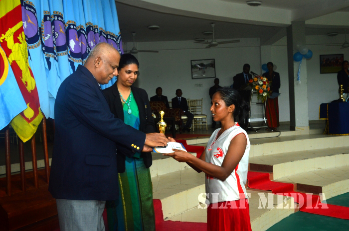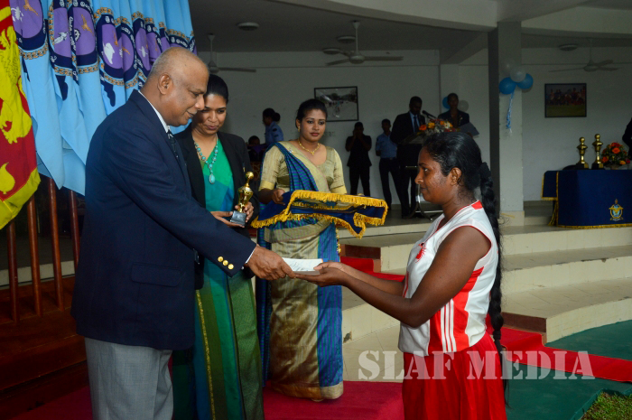 The Chairperson of the SLAF Seva Vanitha Unit, Mrs. Samanthi Bulathsinghala, graced the occasion as the Chief Guest and gave away the main awards. Director Training Air Vice Marshal Vijitha Gunaratne, Commanding Officer of SLAF Station Colombo Air Commodore Prasanna Payoe, Officers, Airmen and Air Women representing the Academy, Bases and stations witnessed the event.