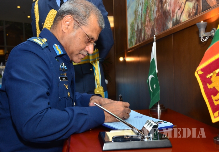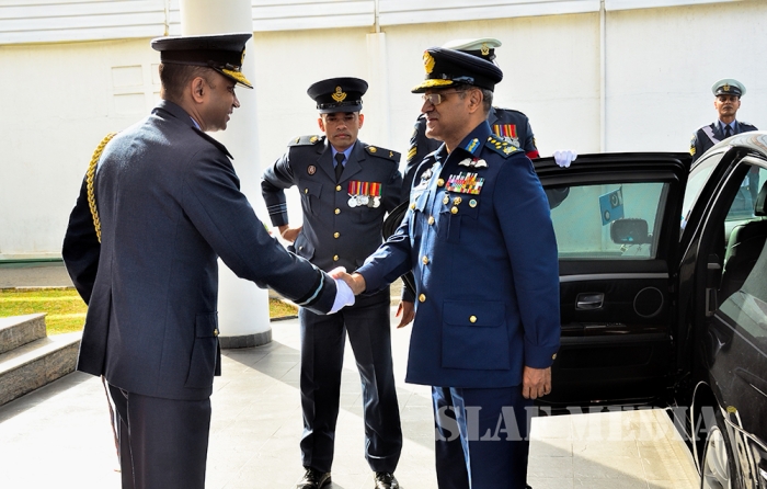 The Chief of the Air Staff (CAS) of Pakistan was received upon arrival by the Commander of the Sri Lanka Air Force. CAS was accorded a Guard of Honour conferred by the Colour Squadron of the SLAF.