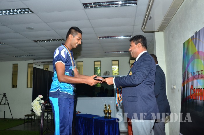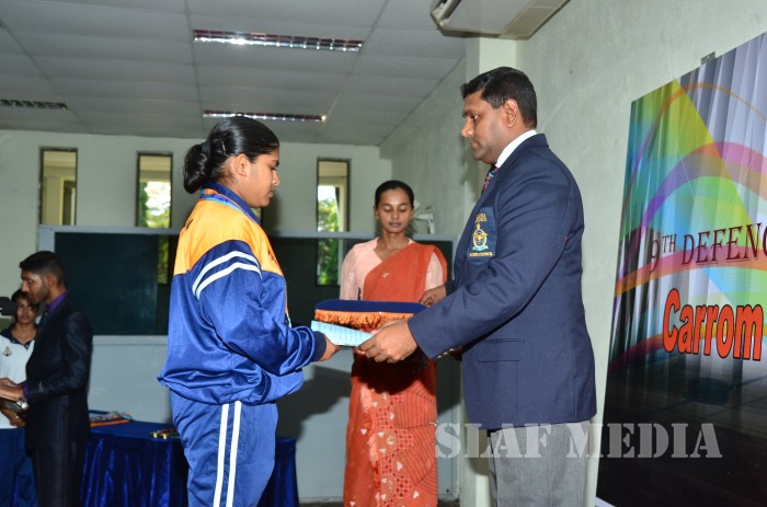 The Director General Operations of Sri Lanka Navy Rear Admiral DMB Wettewa graced the awards ceremony at the Sri Lanka Navy Welisara as the chief guest. Chairman SLAF Carrom, Group Captain VTS Sirimanne, Officers and other ranks of tri forces also witnessed the finals.
