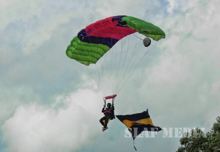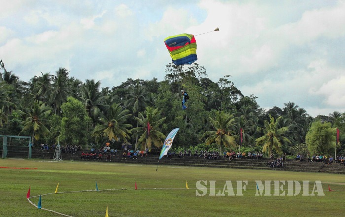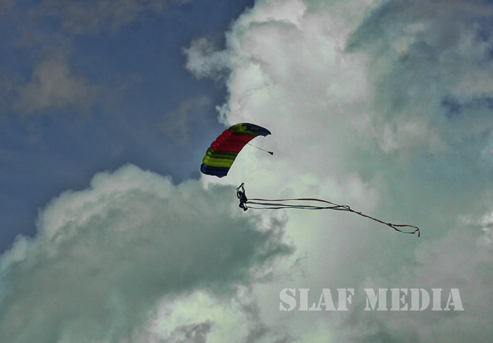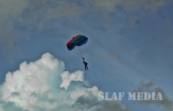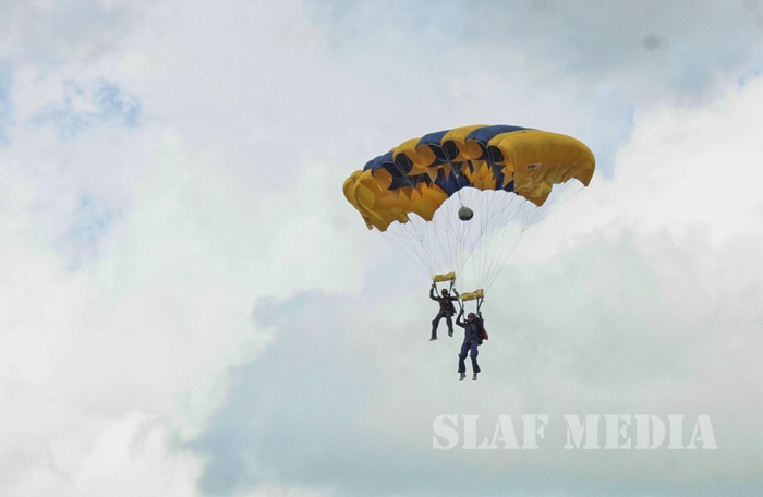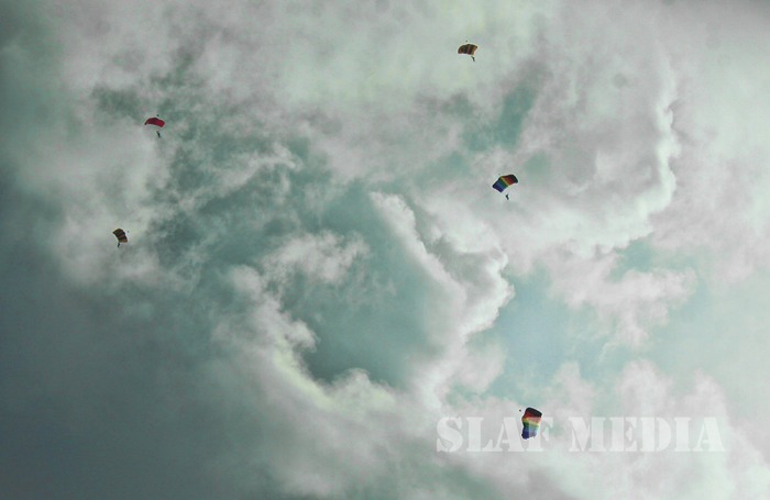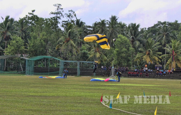 Chairman SLAF Parachuting Gp Capt C Wickramaratne, Senior Officers and other ranks from tri forces witnessed the closing ceremony entertained by spectacular display of parachuting.