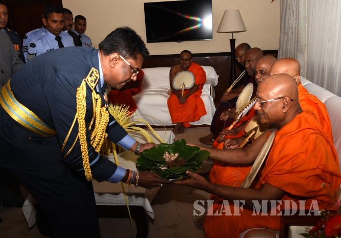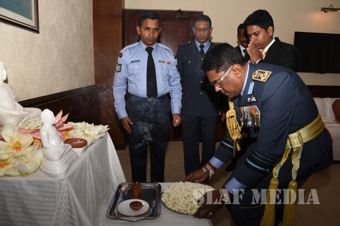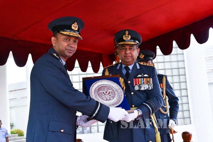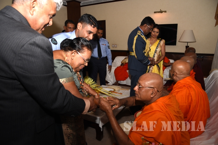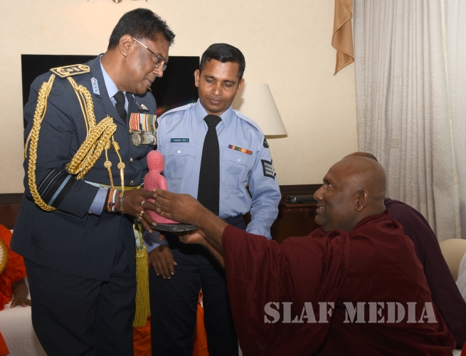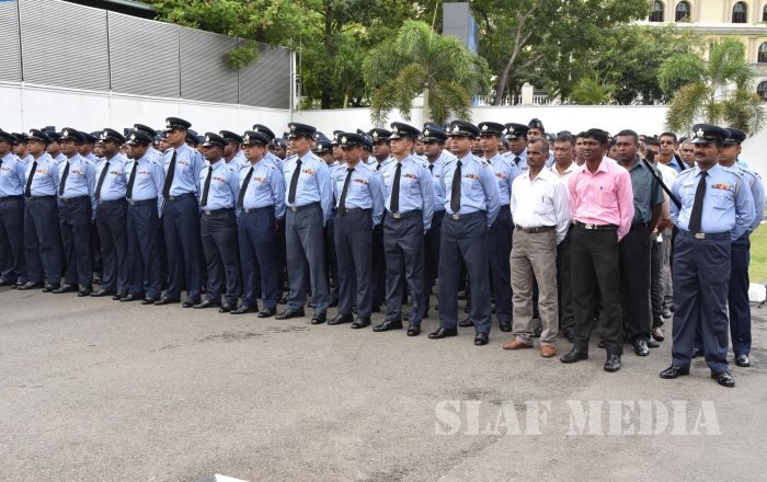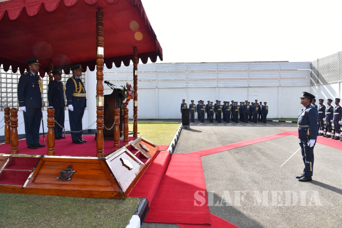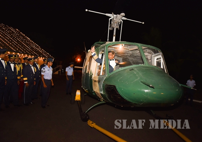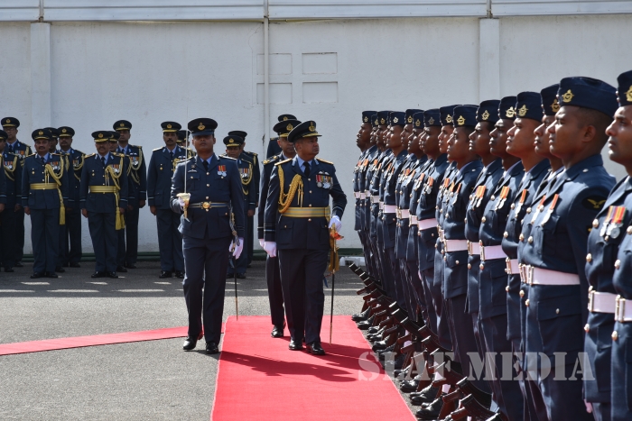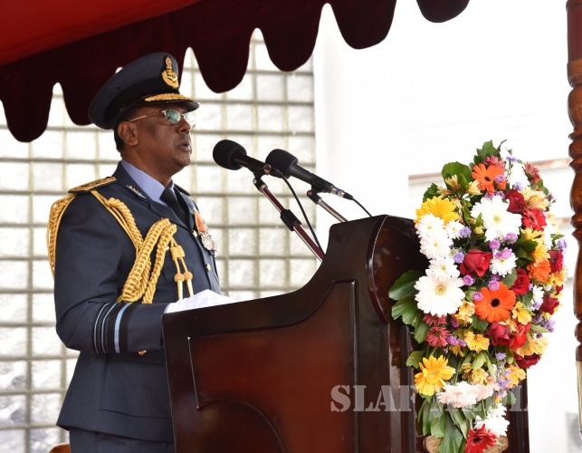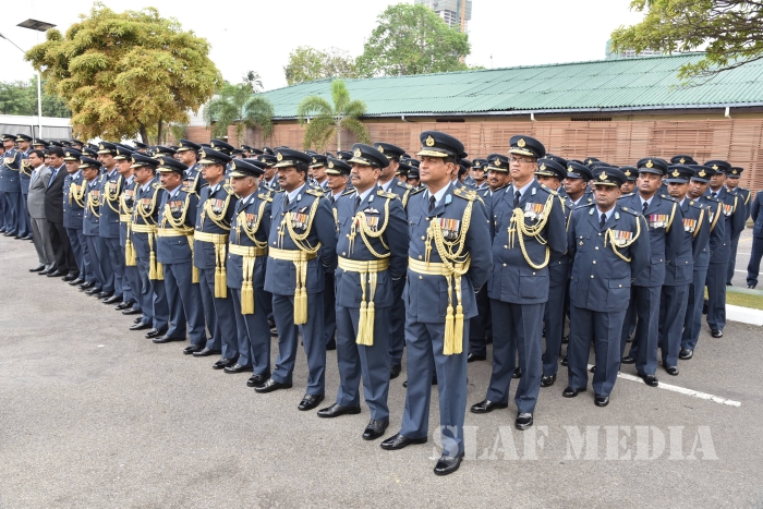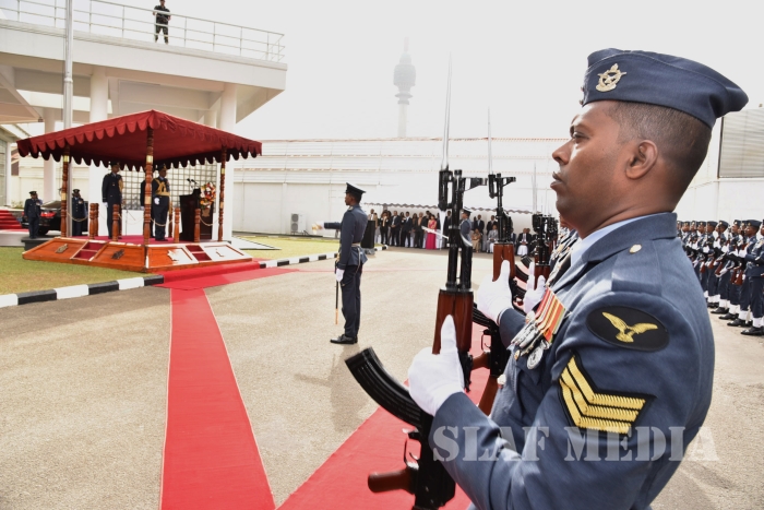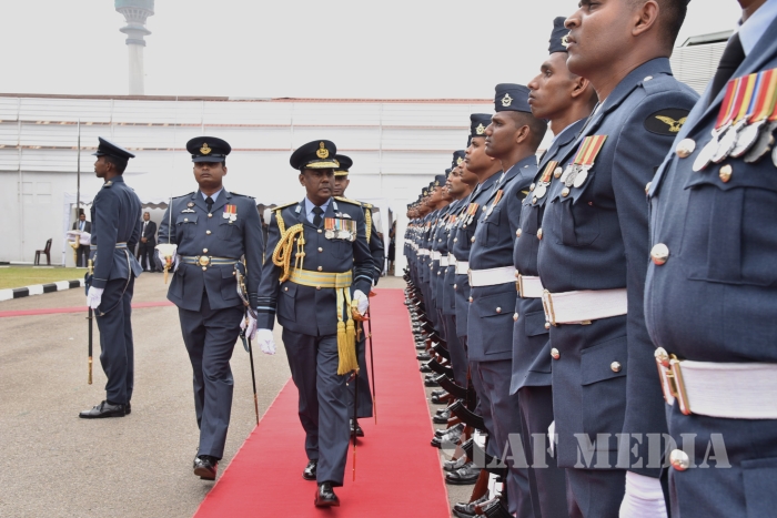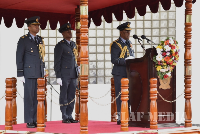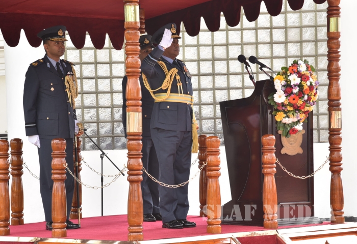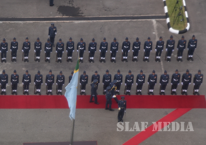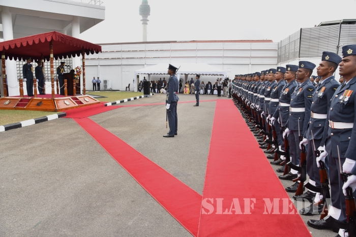 He invited all Air Force personnel to march forward with him, carrying the Air Force flag high, and extended his wishes of health, wealth and happiness to all officers, other ranks and civilian staff of the SLAF and the members of their family.