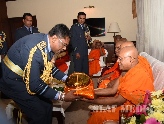 Following this, Air Marshal Kapila Jayampathi ceremonially assumed office as the 16th Commander of the Air Force this morning (14 September 2016).