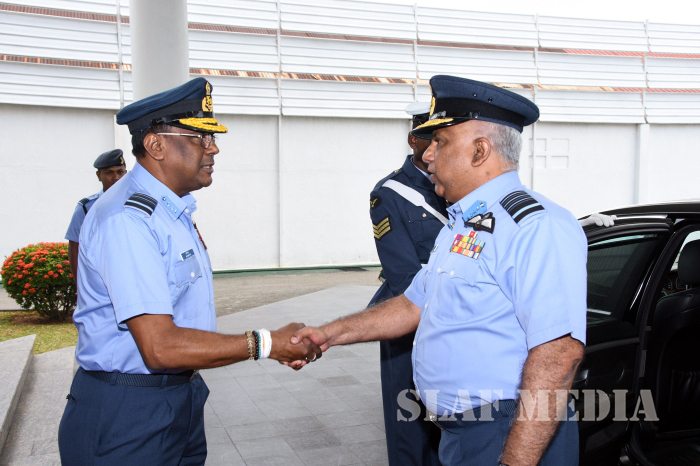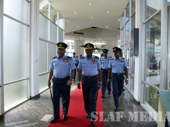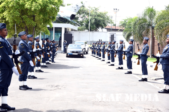 The Chief of Defence Staff was received upon arrival by the Commander of the Sri Lanka Air Force Air Marshal Kapila Jayampathy and was accorded a street lining by the SLAF colour wing.