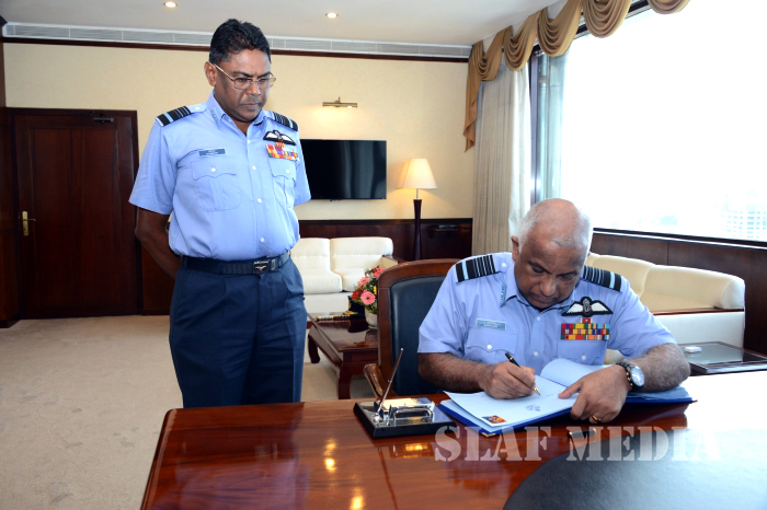 The Chief of Defence Staff (CDS) Air Chief Marshal Kolitha Gunatilleke called on the Commander of the Air Force Air Marshal Kapila Jayampathy at the Sri Lanka Air Force Headquarters today (30 September 2016).