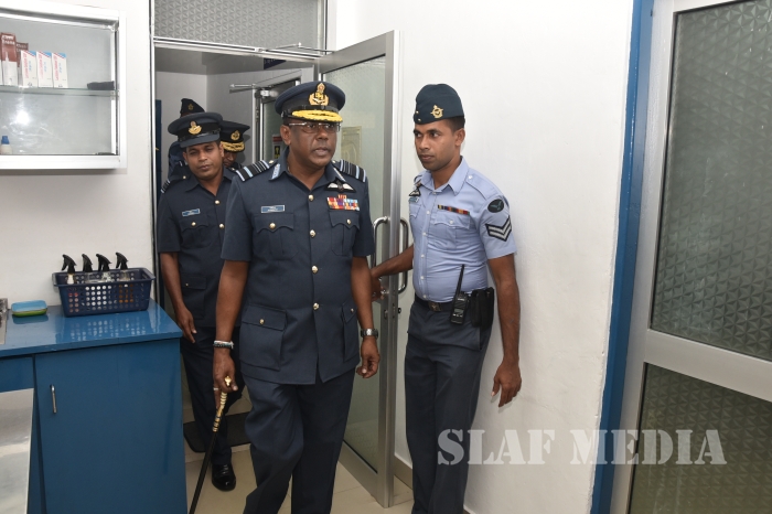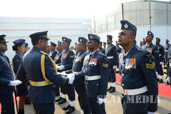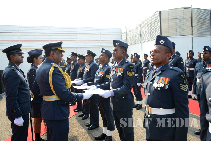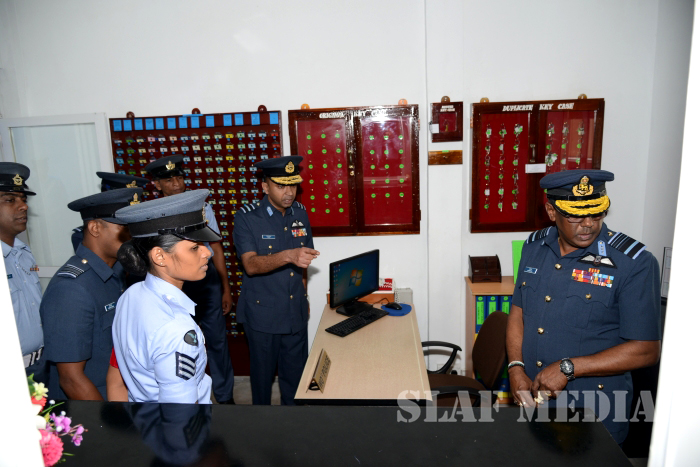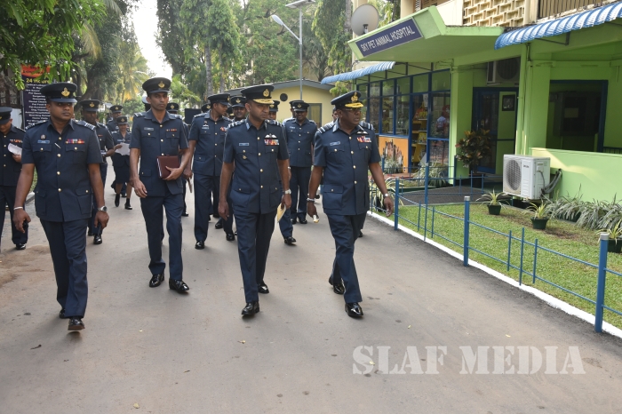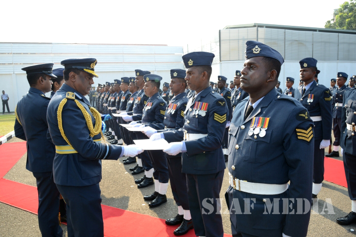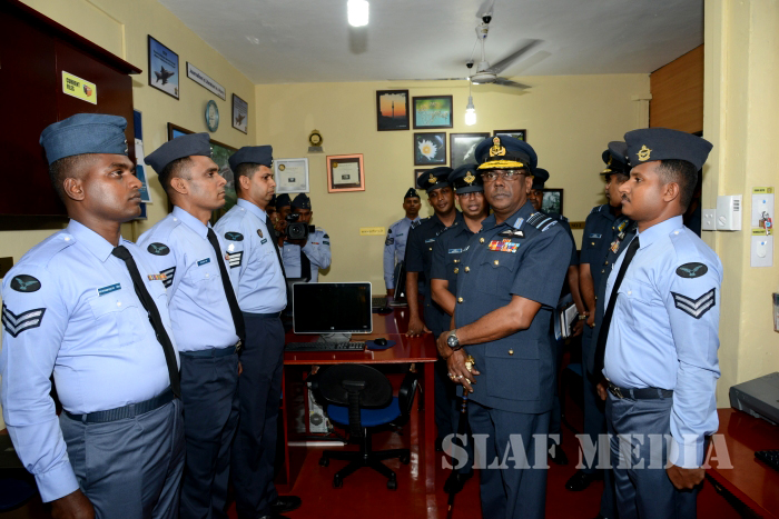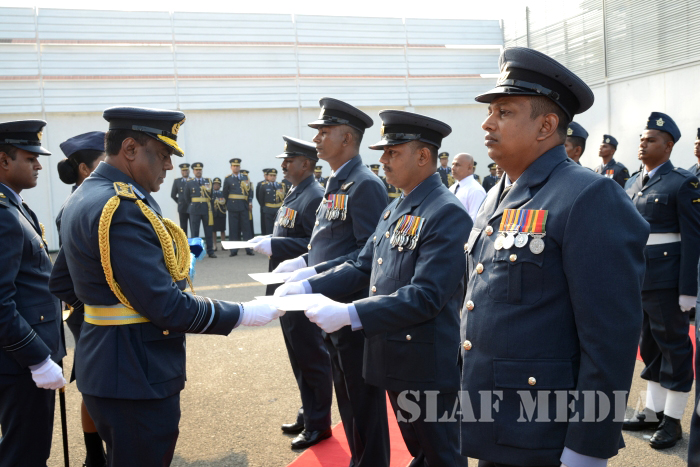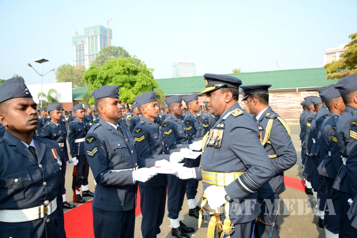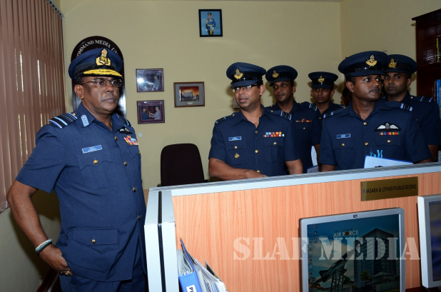 The Commander was welcomed by the Commanding Officer SLAF Station Colombo, Air Commodore Prasanna Payoe. A Guard of Honour was accorded the Commander at Headquarters, following which 1 Master Warrant Officer, 3 Warrant Officer, 15 SNCOs, 10 JNCOs, 5 LACs and 2 Civilians received commendations from the Commander.