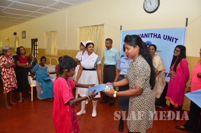 The Seva Vanitha Unit SLAF Base Katunayake organized an alms giving programme at NO 03 Ward Mulleriyawa Hospital on 16 November 2016. In addition, bed sheets, Milk powder, washing powder, coconut oil and some other commodities were handed over to the patients of the hospital. The SLAF calypso band entertained the inmates of the NO 03 ward during the programme.