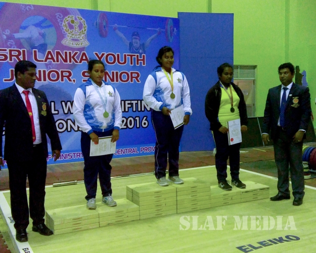 SLAF women’s weightlifting team secured the National title consecutively for the 6th time, winning 3 Gold 3 Silver and 01 bronze medals while men’s weightlifting team became the joint runners up, winning 03 Gold, 02 bronze, 02 Silver at the National Weightlifting Championship conducted from 21 to 24 Dec 16 at National Sports Complex Polonnaruwa organized by the National Weightlifting Federation.