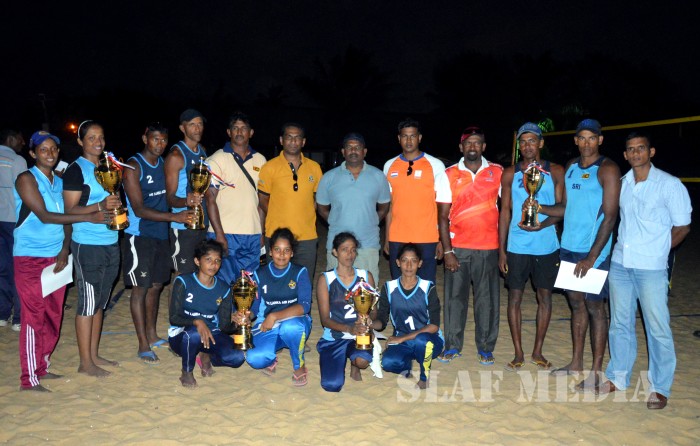 SLAF Men’s and Women’s Beach Volleyball teams won the championships in the open category for the fourth consecutive time at the National Beach Volleyball Championship 2016 held at Negombo Beach Park from 22 to 24 Dec 2016 which was organized by the Sri Lanka Volleyball federation.