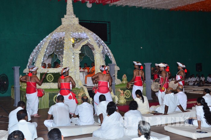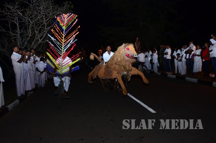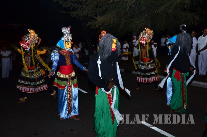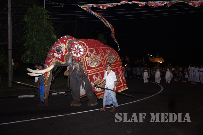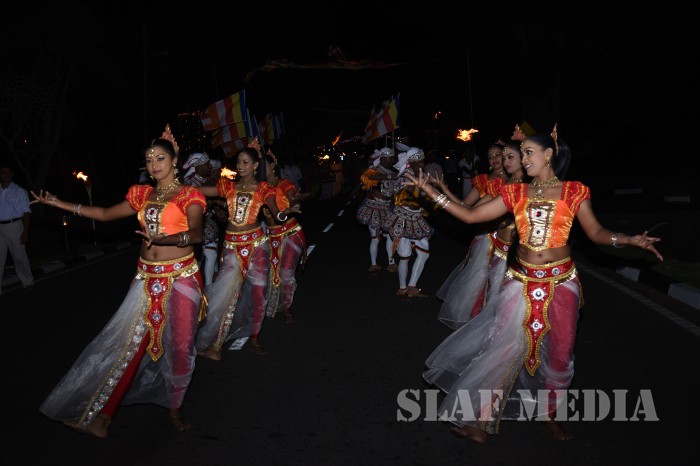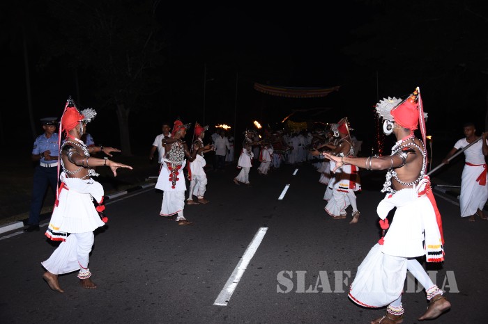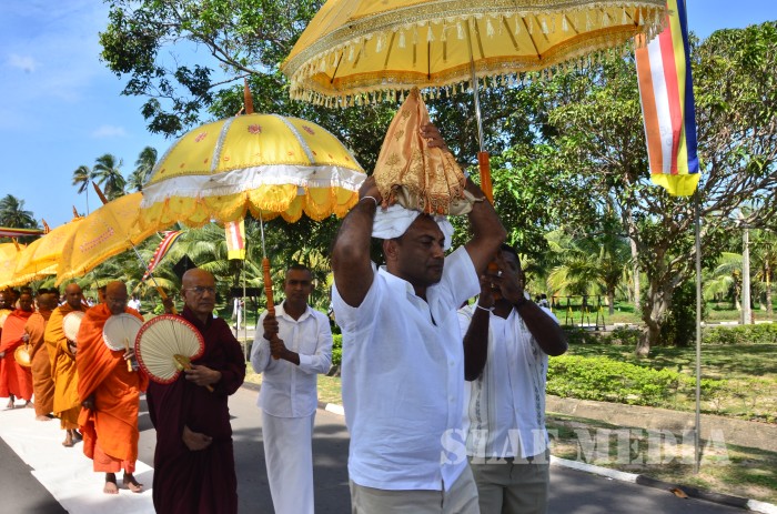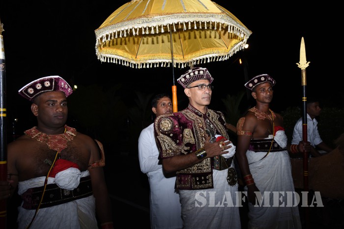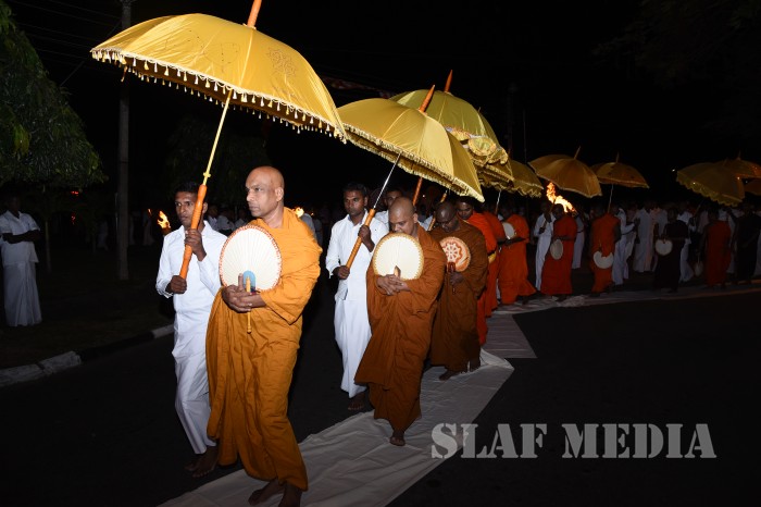 The ‘Reliquary’ (Karaduwa) was taken to SLAF Base Katunayake in a colourful procession and placed in the ‘Pirith Mandapa’ by the Base Commander of the SLAF Base Katunayake Air Vice Marshal HMSKB Kotakadeniya. Subsequently an all night pirith chanting and alms giving was accorded to the venerable Maha Sangha on Saturday.