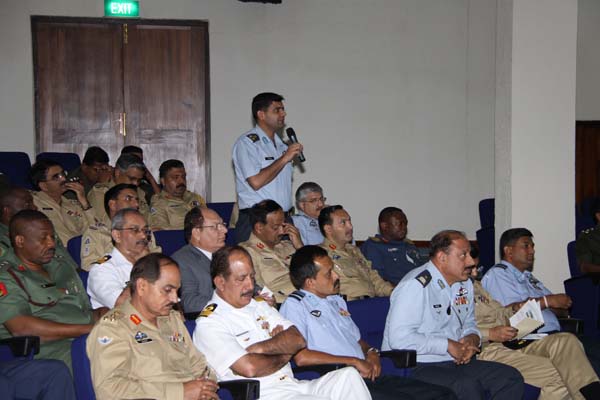 The delegation headed by Air Cdre. Nadeem Anjum will visit the secretary of defence, the commander of the Army and Navy during their study tour in Sri Lanka. A presentation on the SLAF and its operations was conducted by the Director Air Operations Air Vice Marshal Kolitha Gunathilake to enhance their knowledge on Sri Lankan air power.