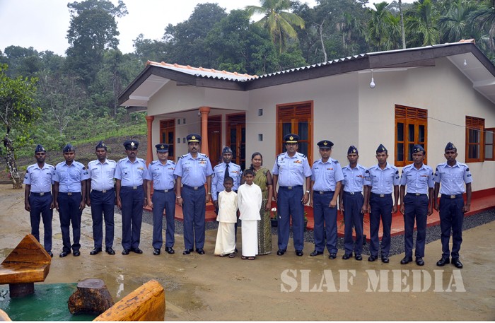 The 17th house constructed under the "Guwan Lak Sevana” Housing Project launched by the Sri Lanka Air Force Seva Vanitha Unit was handed over to 19682 Sergeant Priyantha MK today (23 January 2017) at Lunugala, Passara, Badulla.