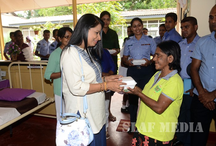 The Chairperson of Sri Lanka Air Force Seva Vanitha Unit Mrs. Anoma Jayampathy led the visiting team. The entertaining activities conducted therein were greatly enjoyed by the inmates of the ward. Thereafter, essential commodities and gift packs were donated for the inmates followed by a serving of refreshments.
