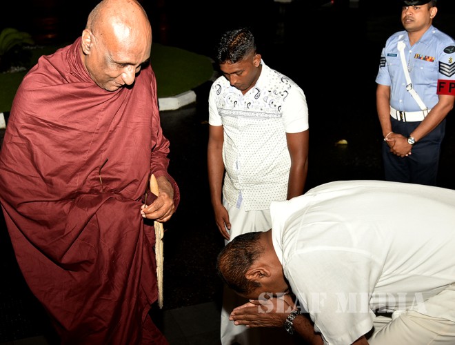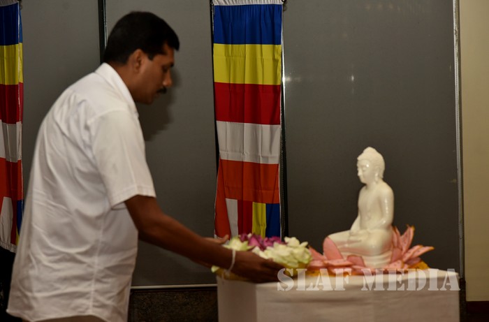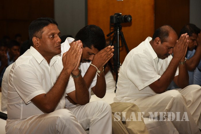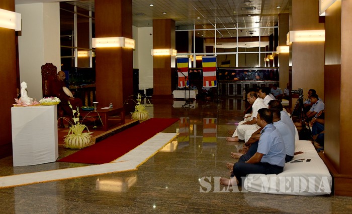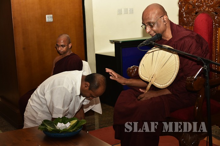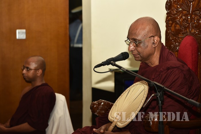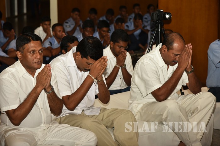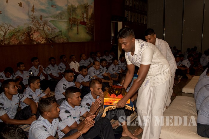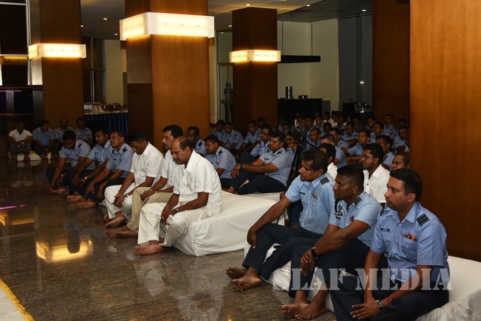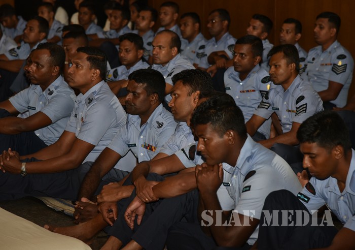 A Dharma Deshana programme presided over by Ven. Ambagamuwe Sanwutha Thero was held at SLAF Headquarters on 15 March 2017. Chief of Staff of the Air Force Air Vice Marshal DLS Dias, Director Health Services Air Commodore LR Jayaweera, Director Welfare Air Commodore WMKSP Weerasinghe, senior officers, other ranks and civilians participated in the programme.