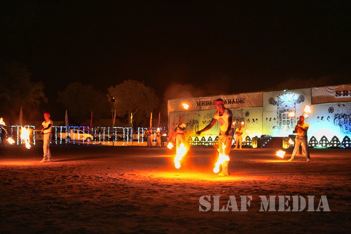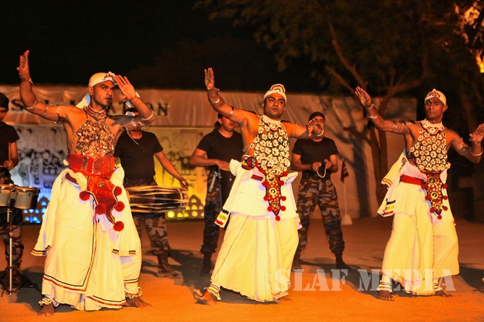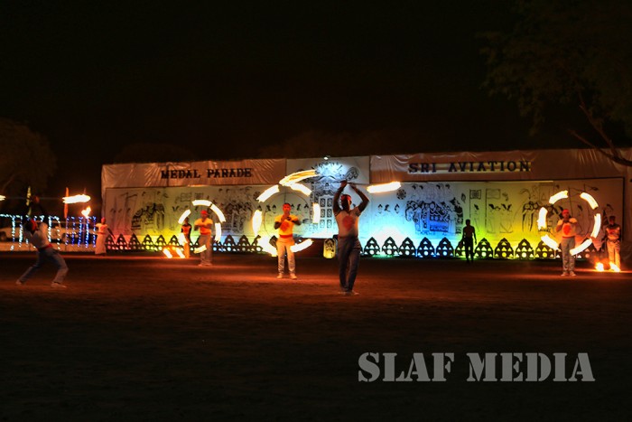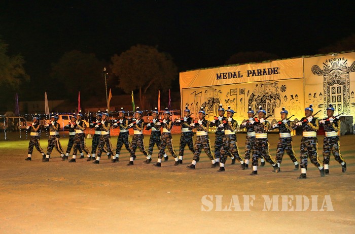 The medal parade was made more glamourous by the fact that it was held in the night, replete with a drill display, traditional dance items, drum performance, flute performance as well as a fire display. A fire dance was performed by the contingent personnel before the guest were hosted to a unique Sri Lankan Dinner at the contingent premises.
